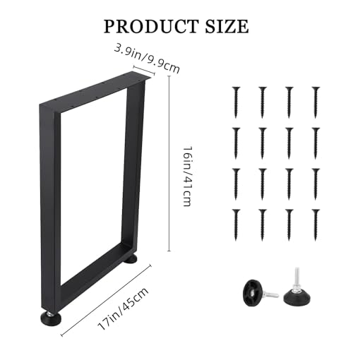 Metal Table Legs - 16" H x 17.7" W, Heavy Duty, Adjustable, Square Reinforced Steel Office Table, Ideal for Coffee & Dining Tables Office