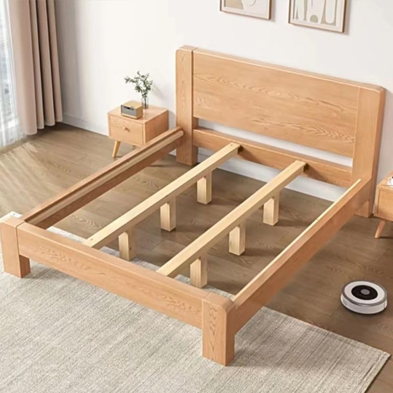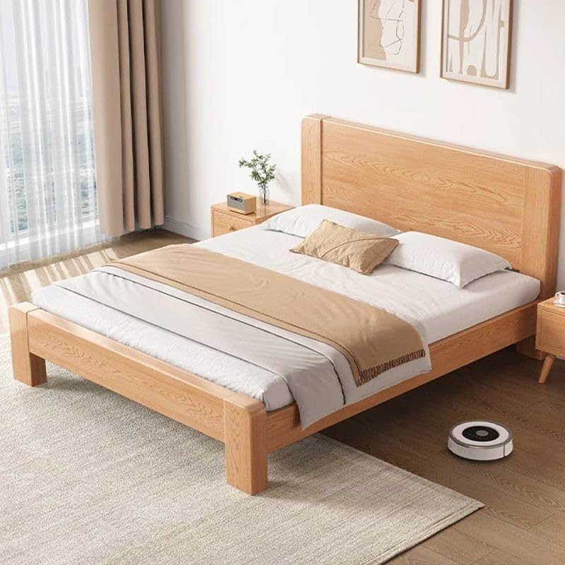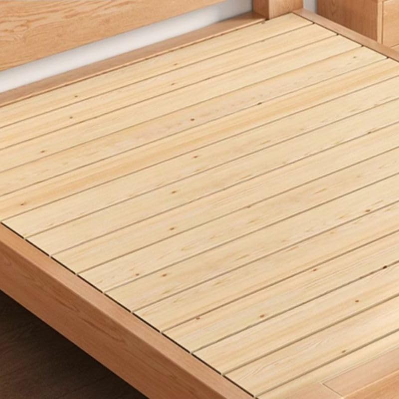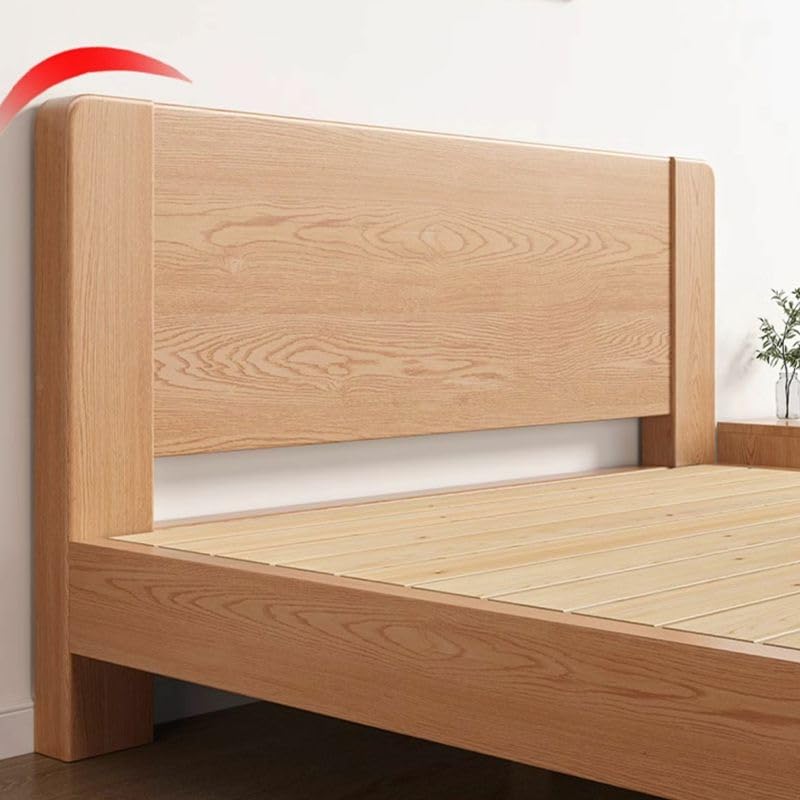 CraftThink Scandinavian Solid Wood Bed Frame, 12" Tall Storage Panel Bed in Natural for Bedroom Boys Girls- Single Bed Size: Full XL, 53" W x 81" L x 12" H