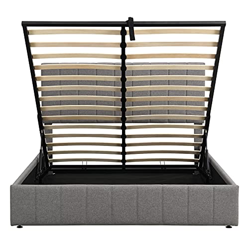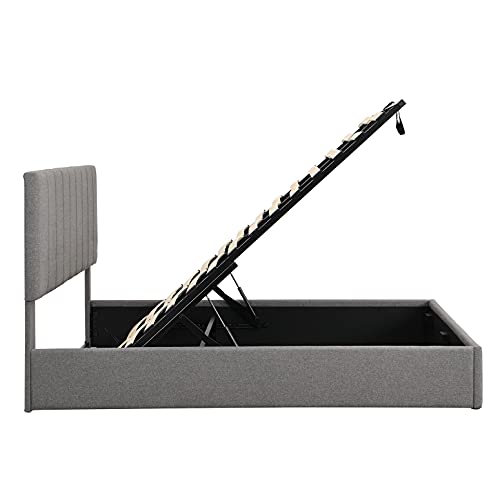 Upholstered Queen beds Gas Lift Up Storage Platform Bed Frame with Tufted Headboard Wooden Slat Support and Under Bed Storage for Kids Teens Adults, Beige
