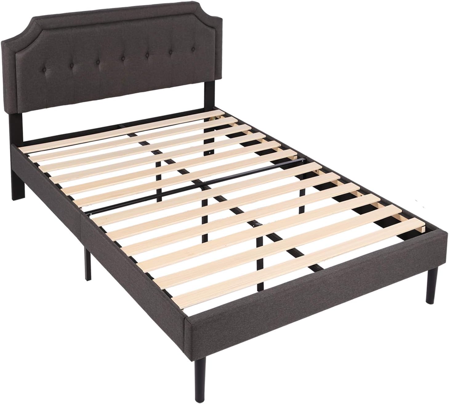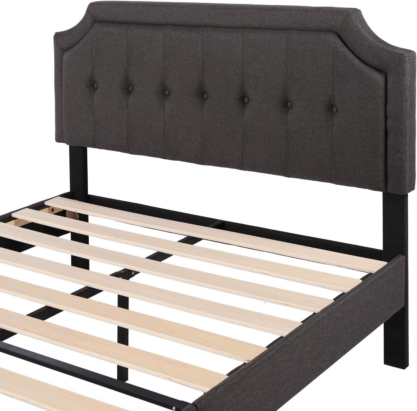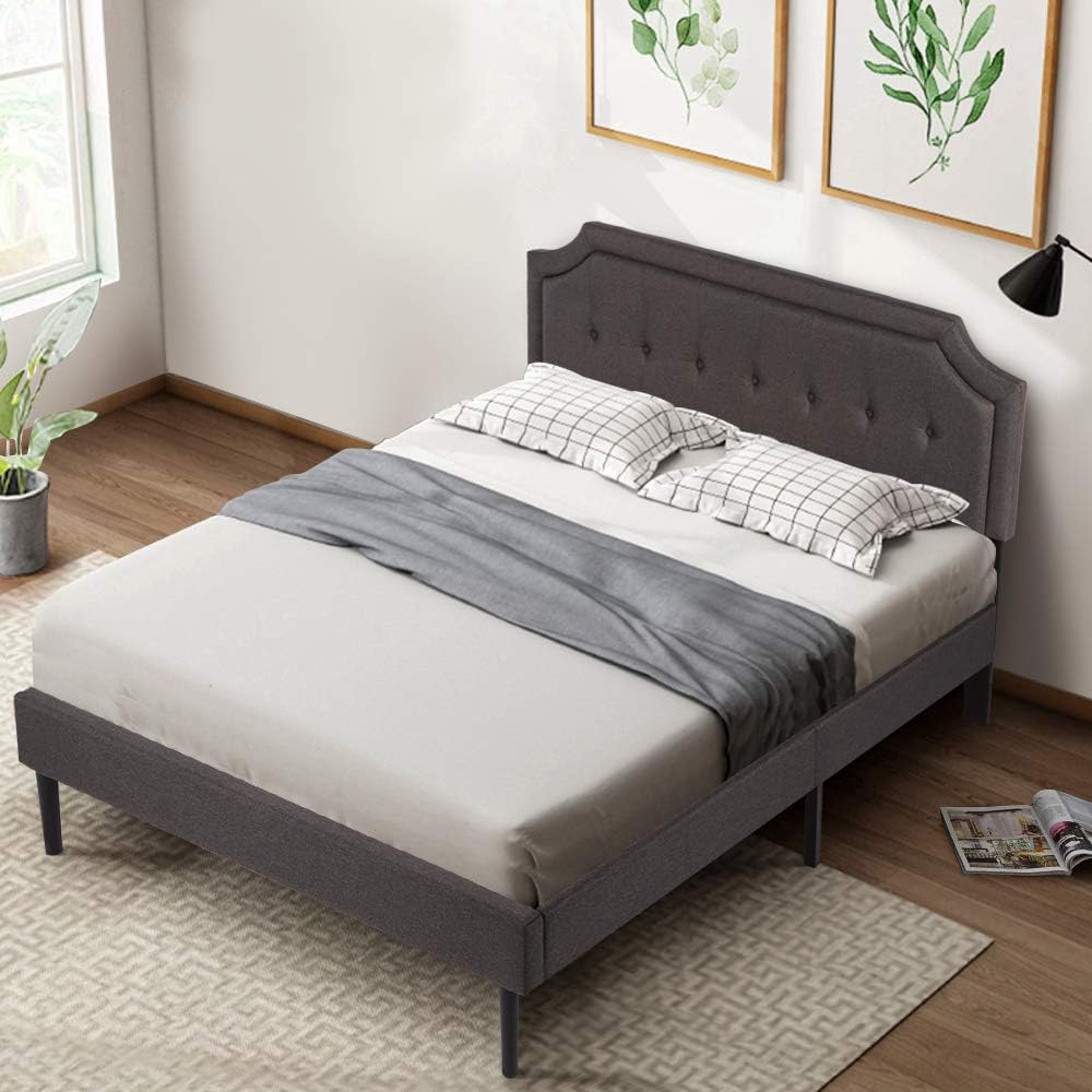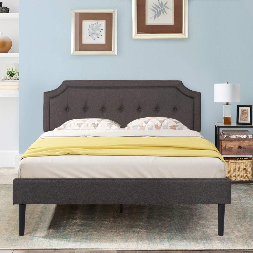 VECELO Premium Upholstered Platform Bed Diamond Stitched Panel Headboard, Metal Frame & 12 Strong Wood Slat Support, Mattress Foundation/Easy Assembly,Queen, Dark Gray
