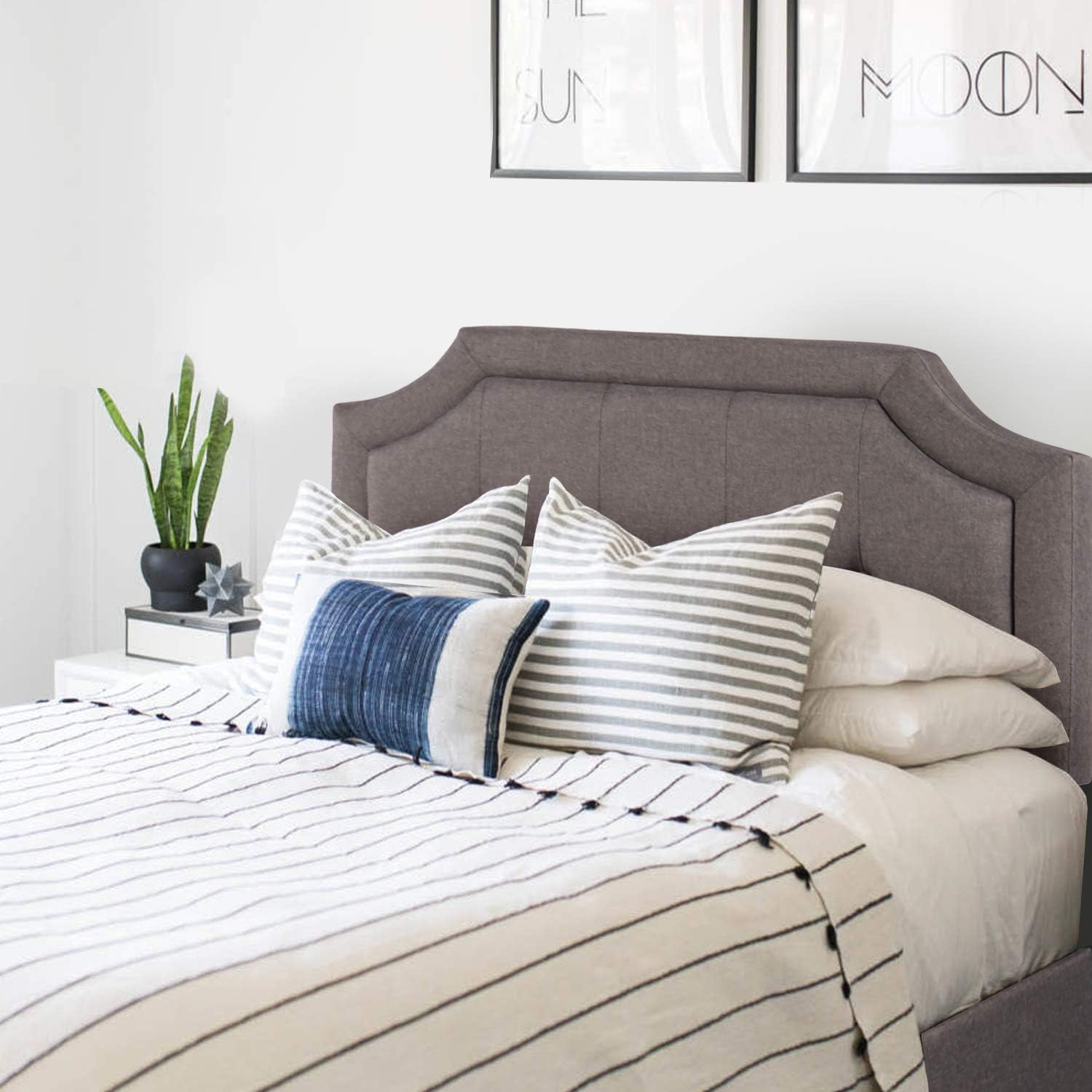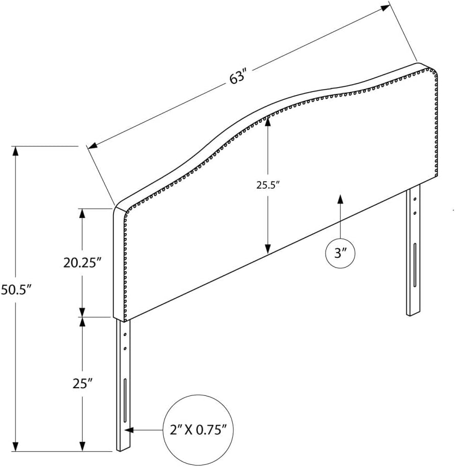 Monarch Specialties 6011Q, Queen, Bedroom, Upholstered, Pu, Grey, Transitional Bed Size Leather-Look Headboard