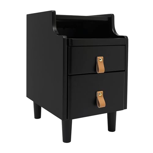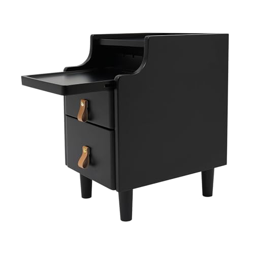 DNYSYSJ Nightstand Bedside End Table with LED Lights 2 Storage Drawers High Gloss Nightstand Cabinet Unit for Bedroom Living Room End Table Side Table (Style B (White))