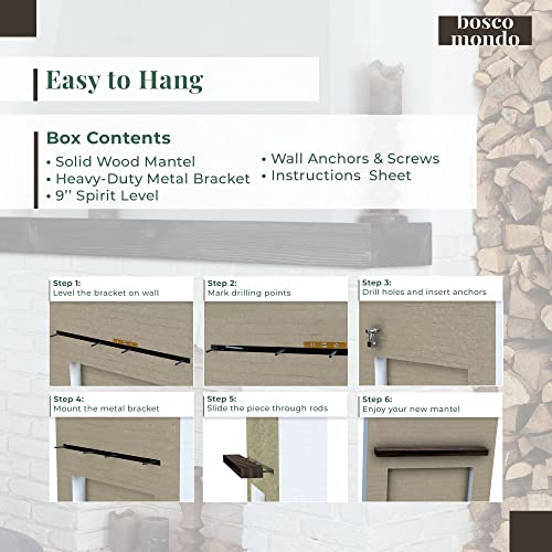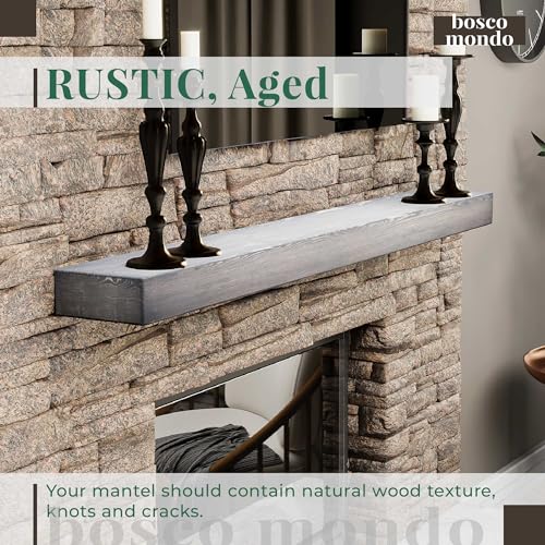 BoscoMondo Fireplace Mantel, Rustic Solid Wood Piece Floating Shelf – Wall Decor for Kitchen, Farmhouse, – Wall Mounted – Pine Wood - Invisible Heavy Duty Bracket (54", Unfinished)