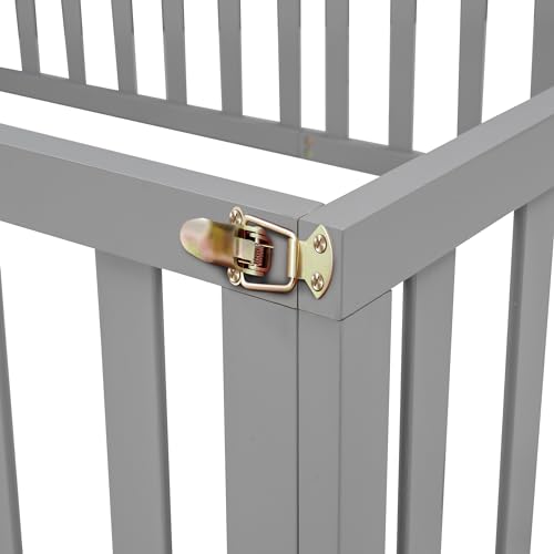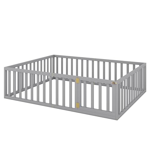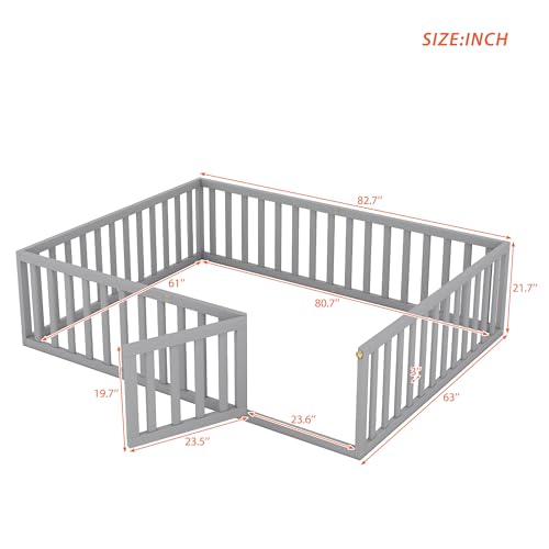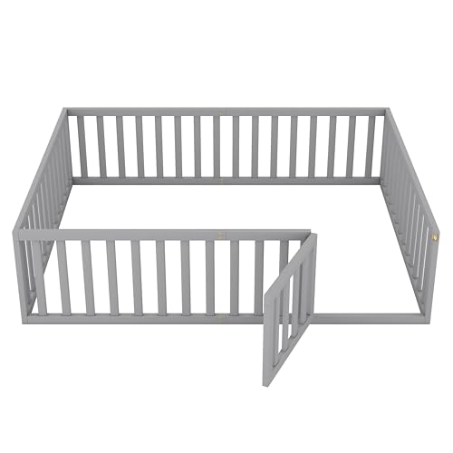 LLS Full Size Floor Bed for Children, Durable Montessori Floor Bed with Safety Fence & Small Door, Wood Floor Bed Frame for Girls Boys and Teens, Natural (No Bed Slats)