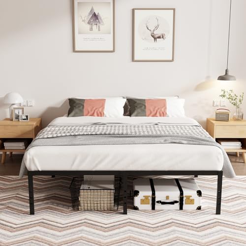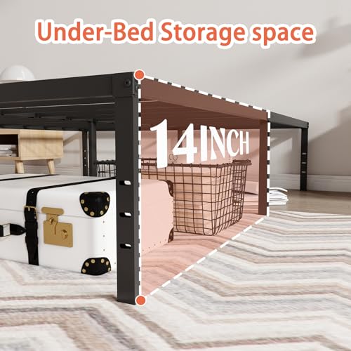 Full Size Bed Frame 14 inch High Metal Platform Heavy Duty Full Bed Frame Sturdy Steel Slat Support Foundation Bed Frames No Box Spring Needed, Under Bed Storage, Easy Assembly