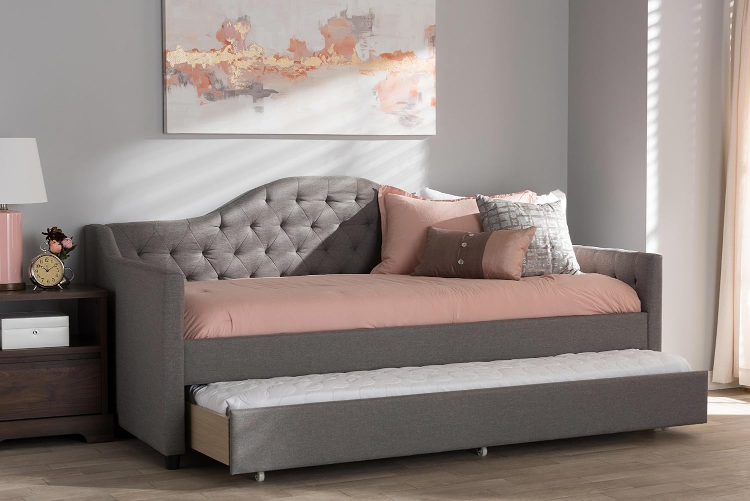 Baxton Studio Peola Modern Fabric Daybed with Trundle, Twin