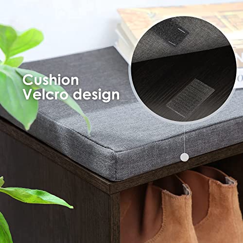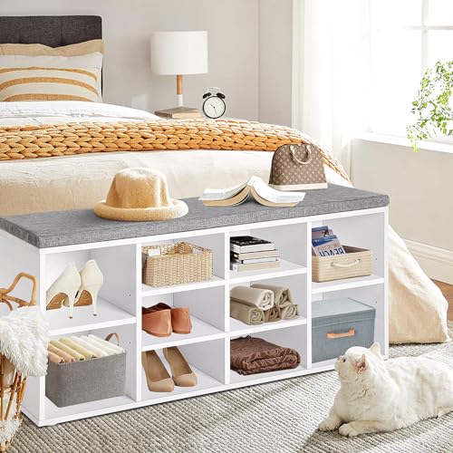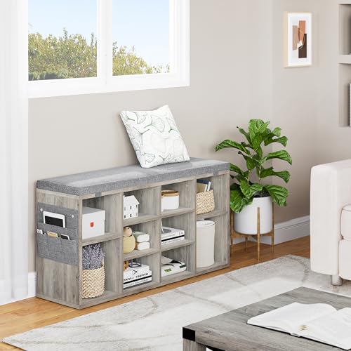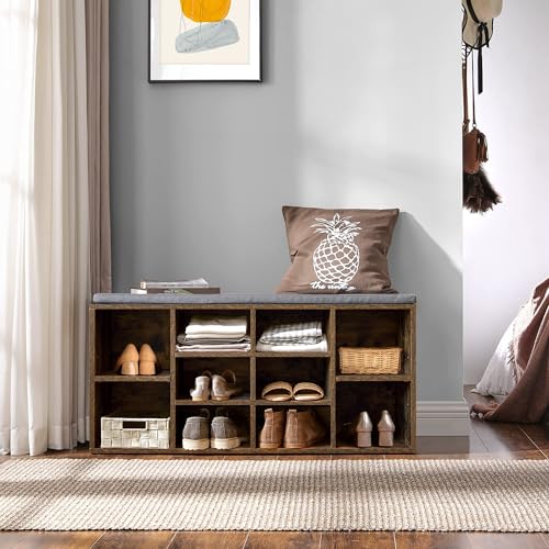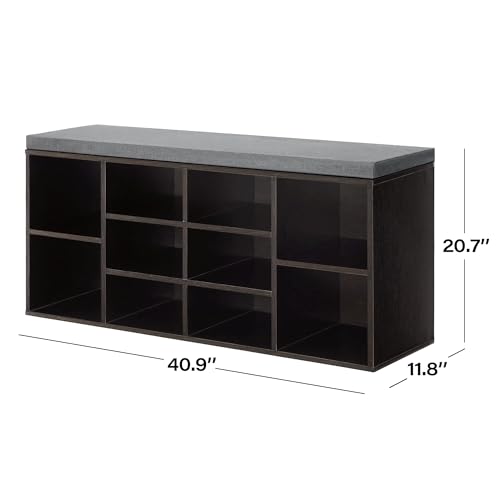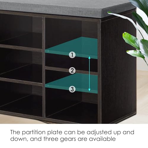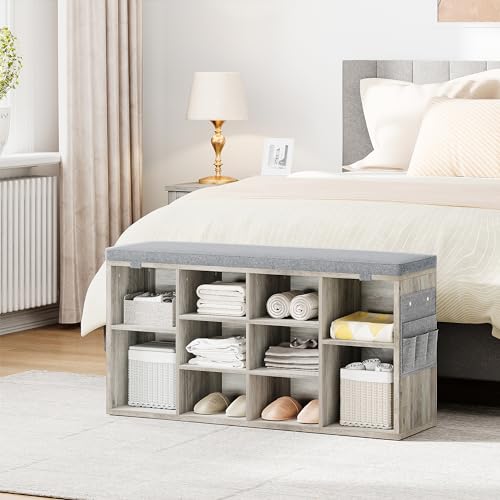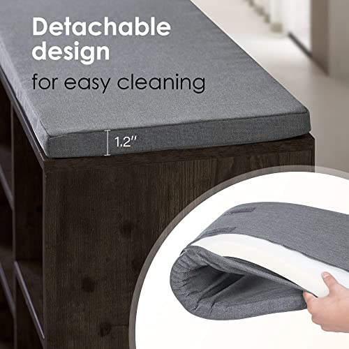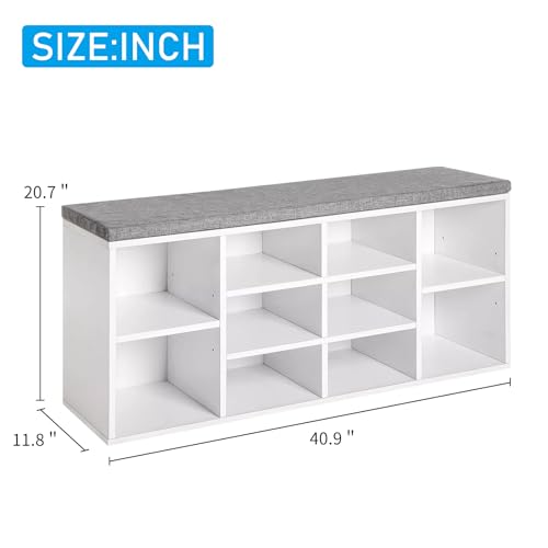 Shoe Storage Bench Cubby Organizer, Shoe Rack Bench with Removable Cushion Top, 3-Tier Entryway Bench 10 Compartments, Adjustable Shelves Shoe Shelf for Living Room Entryway Hallway Bedroom, 41in Grey