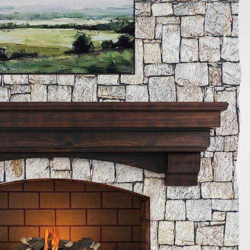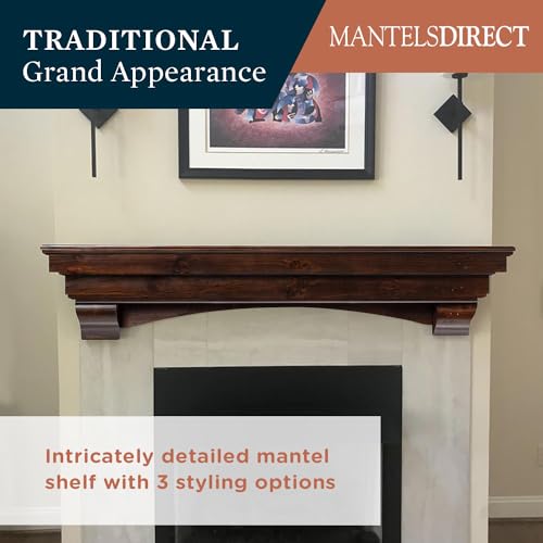 MANTELSDIRECT Mantels Direct Salem Wood Mantel Shelf with Arched Corbels - Unfinished 60 Inch | Wooden Rustic Wall Mounted Shelf from Pine Wood - Perfect for Fireplaces, TVs & Décor