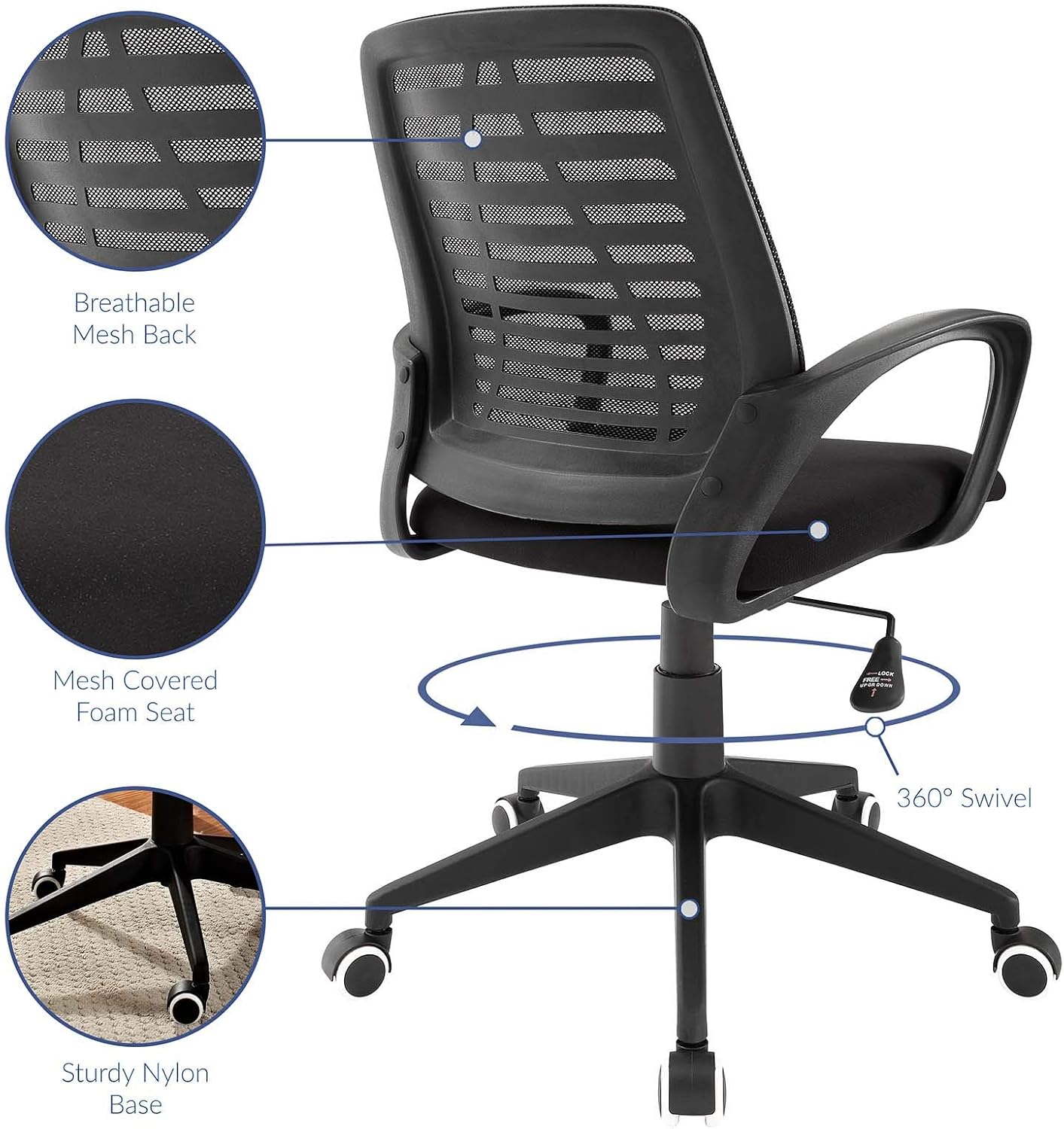 Modway Advance Mesh Ergonomic Computer Desk Office Chair in Black With Flip-Up Arms