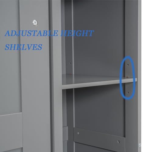 Rophefx Full Size Murphy Bed with 2 Five-Layer Shelves and LED Lights, Modern Wall Bed for Small Space, Foldable Platform Bed, Cabinet Bed No Box Spring Needed, Space Saving Bed Frame, Grey