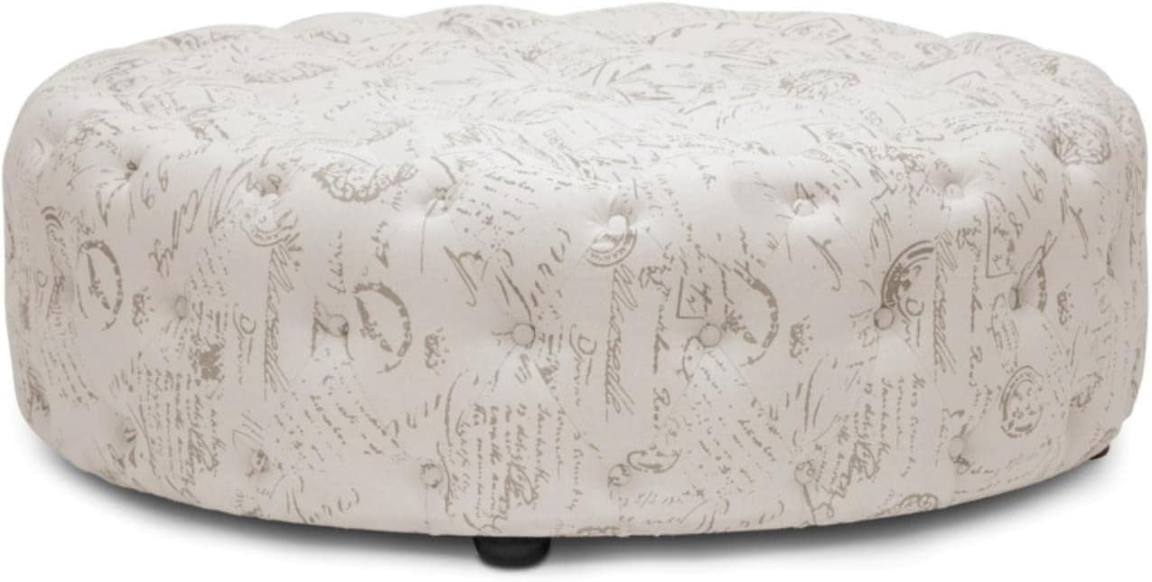 Baxton Studio Cardiff Script Print Modern Tufted Ottoman, Beige