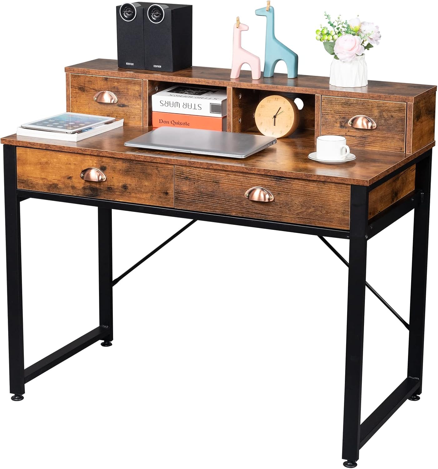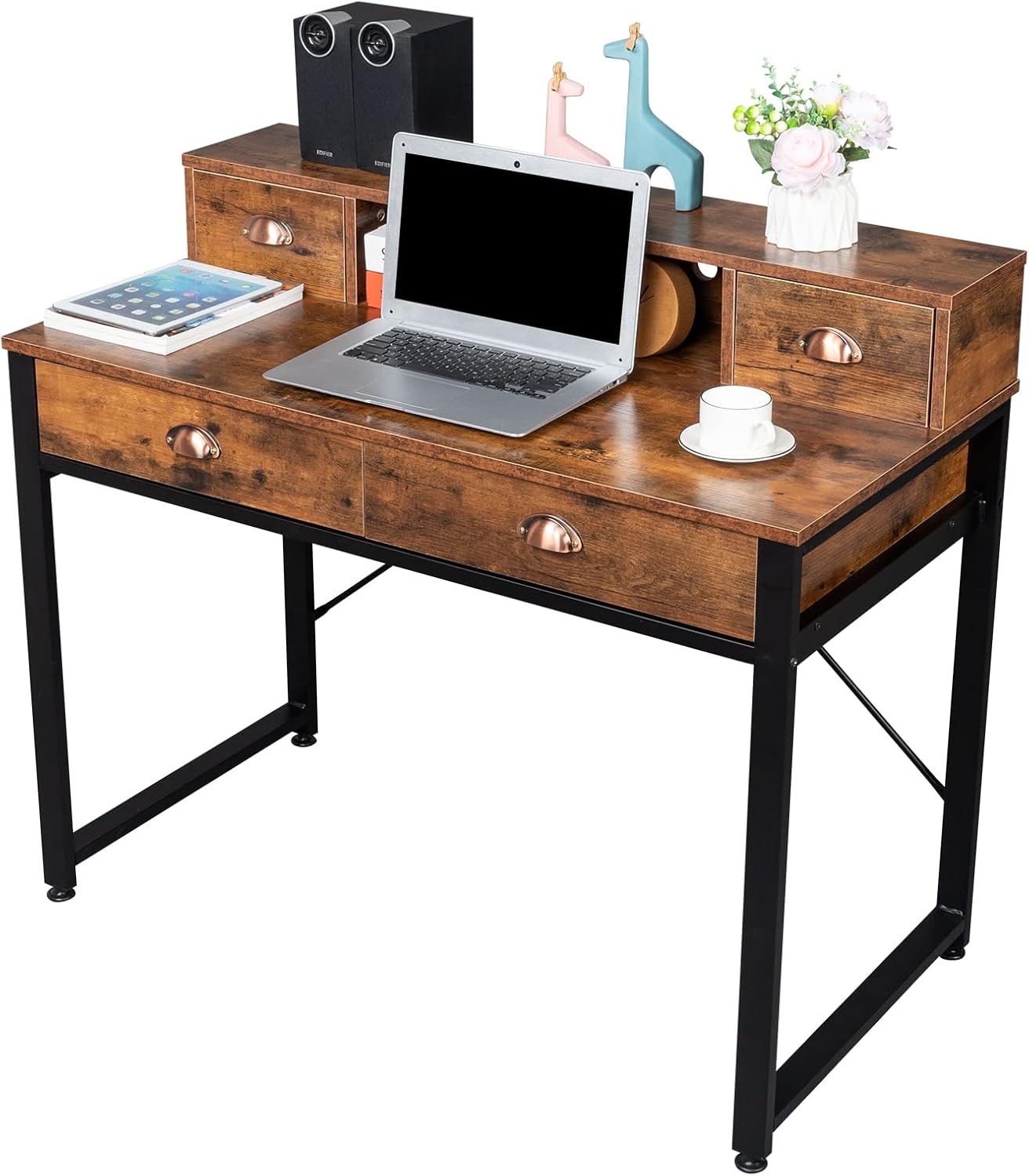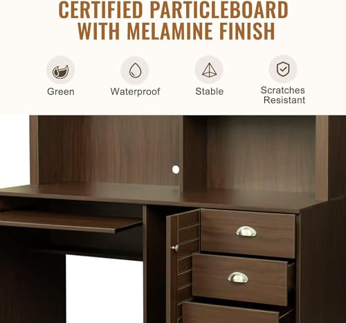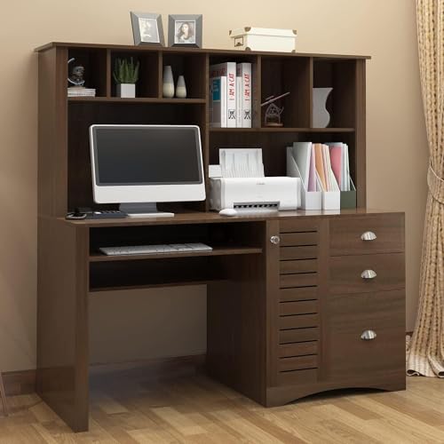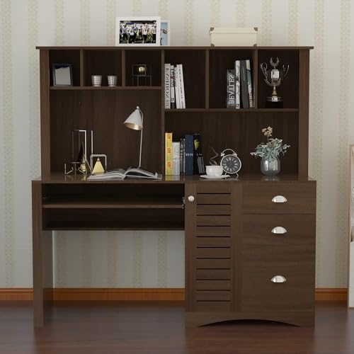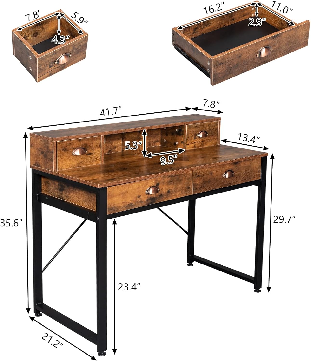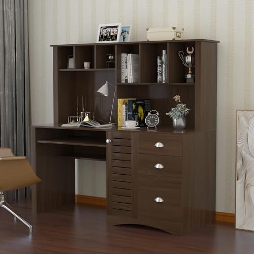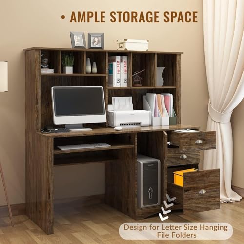 Computer Desk with Drawers & Hutch, 41.7" L x 21" W x 35.6" H Office Desk, Home Office Desk with Storage Shelves (Old Wood Color)