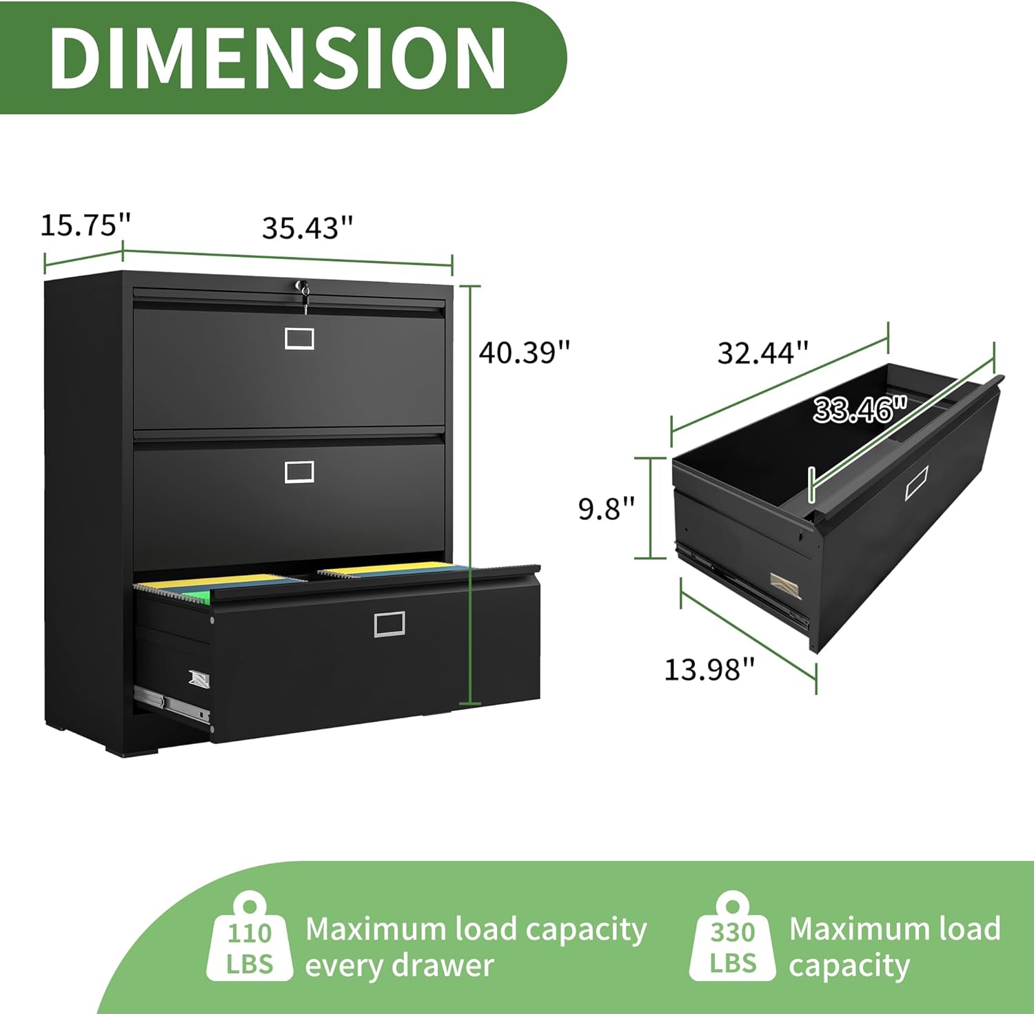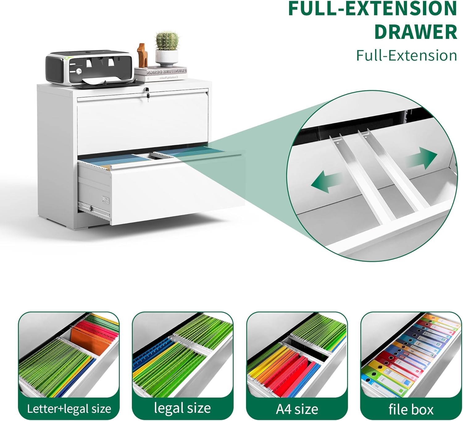 Lateral File Cabinet with Lock,3 Drawer and 4 Drawer Metal Filing Cabinets, Home Office Storage Cabinet for Hanging Files Letter/Legal/F4/A4 (White)
