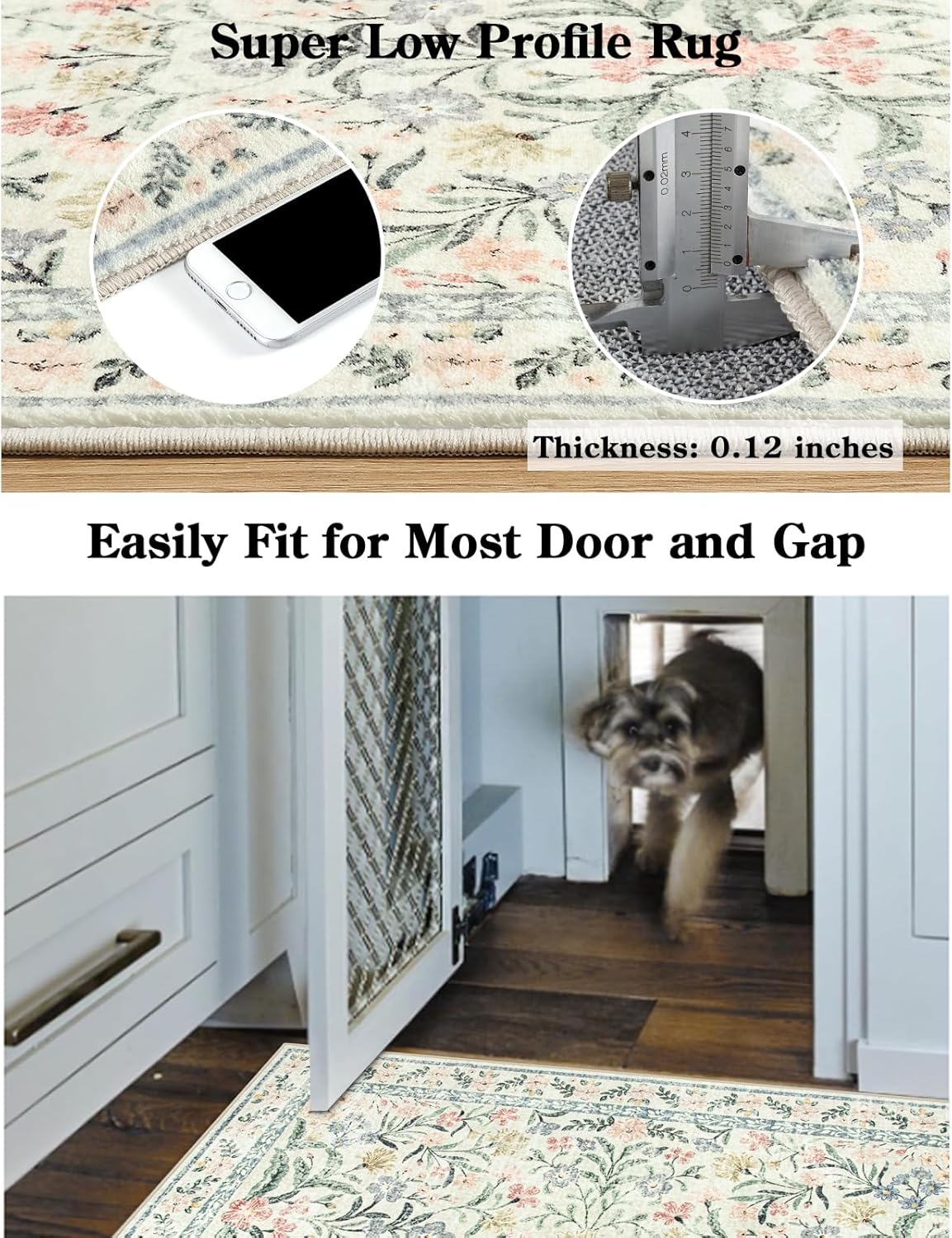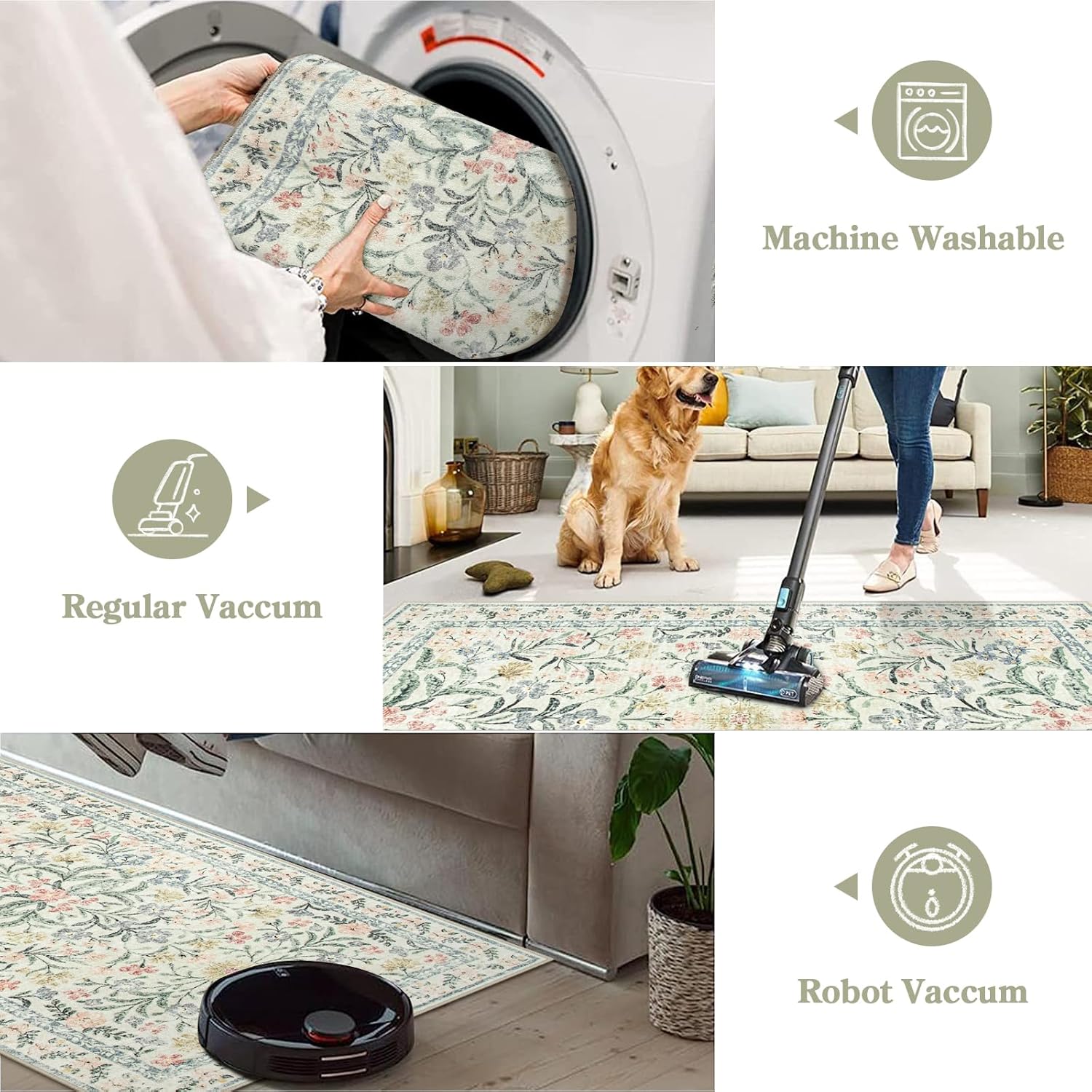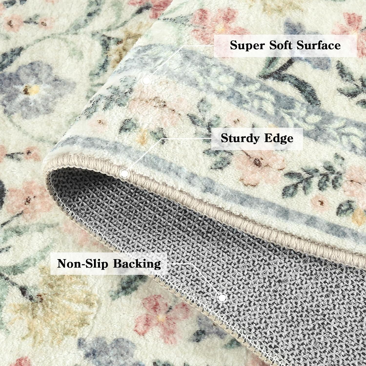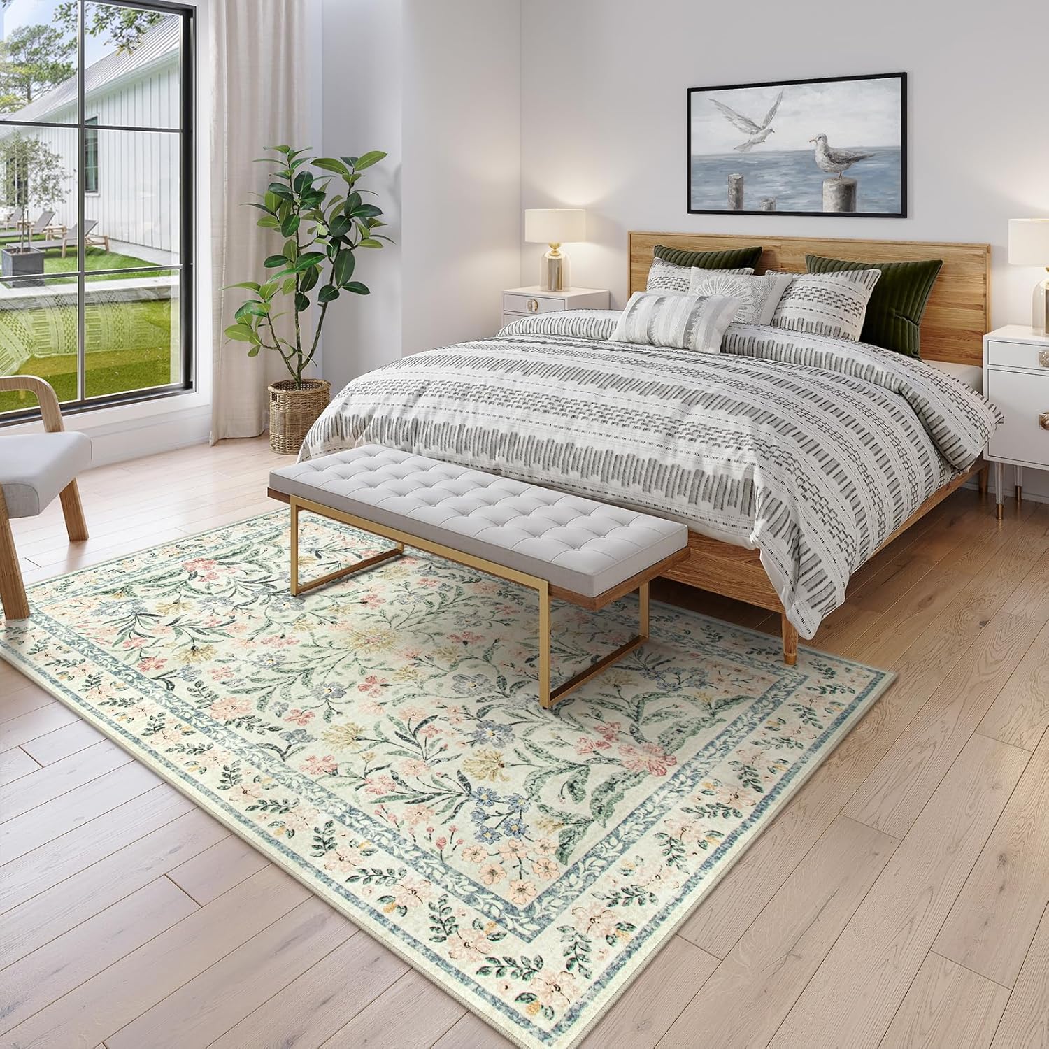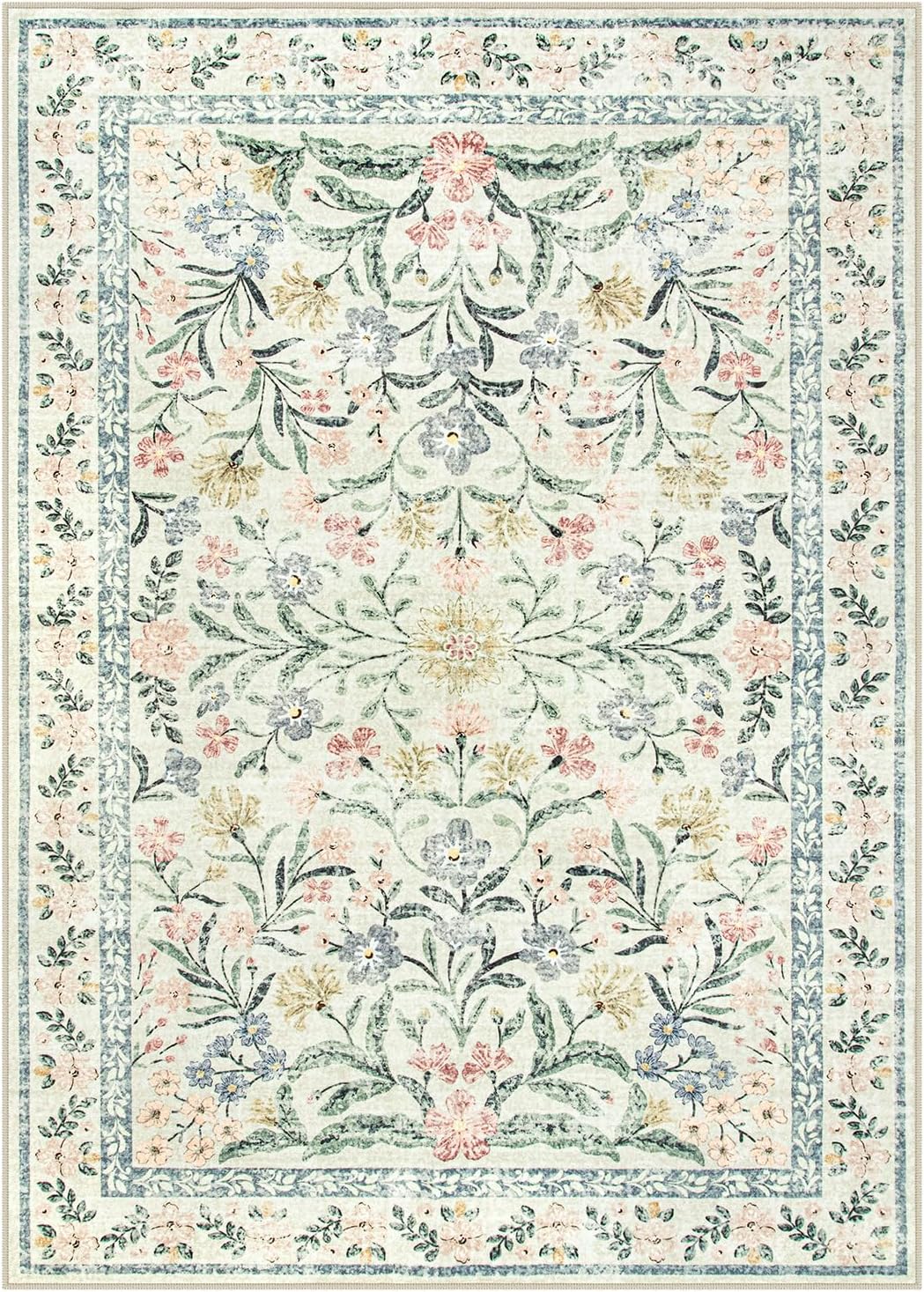 Lahome Washable Area Rugs 5x7, Boho Bedroom Rug Non-Slip, Large Living Room Carpet Soft Vintage Floral Throw Rug for Home Office Décor Rv Foyer Entryway Bathroom, Cream/Multi