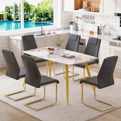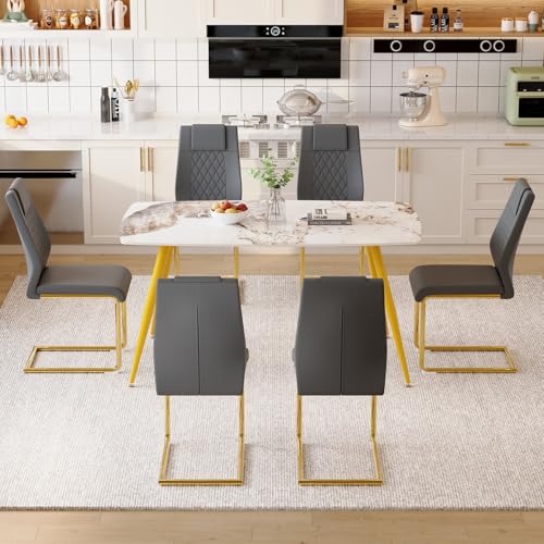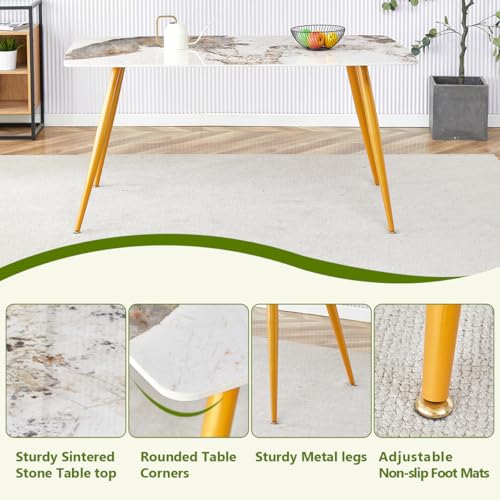 Small Dining Table Set for 4,5 PCS Sintered Stone Dining Room Table Set,50” White Kitchen Table Set and 4 Gray Dining Chairs for Dining Room Kitchen, Small Space