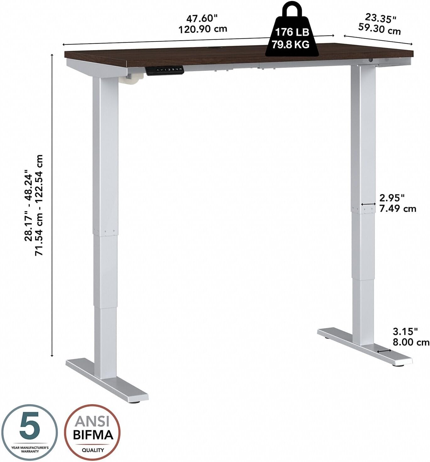 Old World Opulence 48W X 24D Electric Height Adjustable Standing Desk