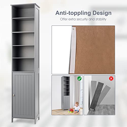 COSTWAY Bathroom Storage Cabinet, Freestanding Floor Cabinet with 3-Level Adjustable Shelves, Convenient Door & Knob, Narrow Tall Cabinet Organizer for Bathroom, Living Room, Kitchen (Brown)