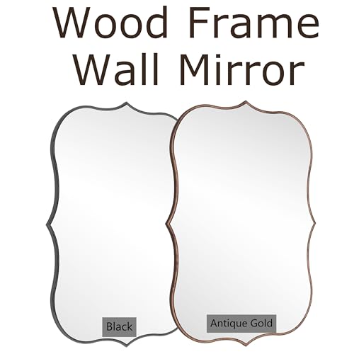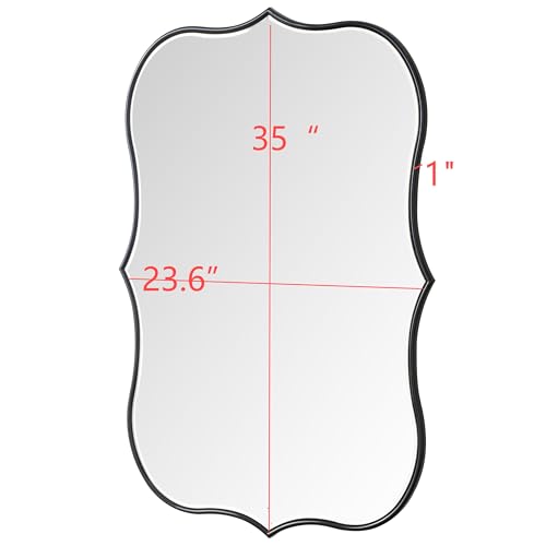 SHYFOY Asymmetrical Mirrors for Wall Decor, Black Irregular Decorative Wall Mirror for Living Room Decor, Curves Wood Frame 24"x35" Waving Large Mirror