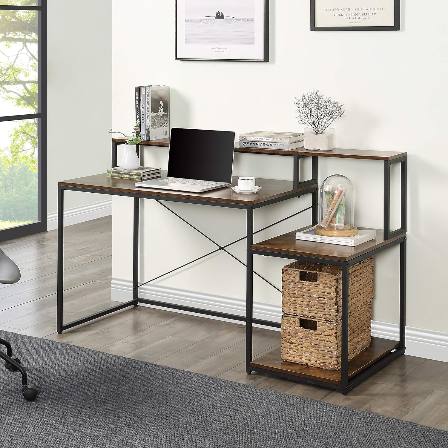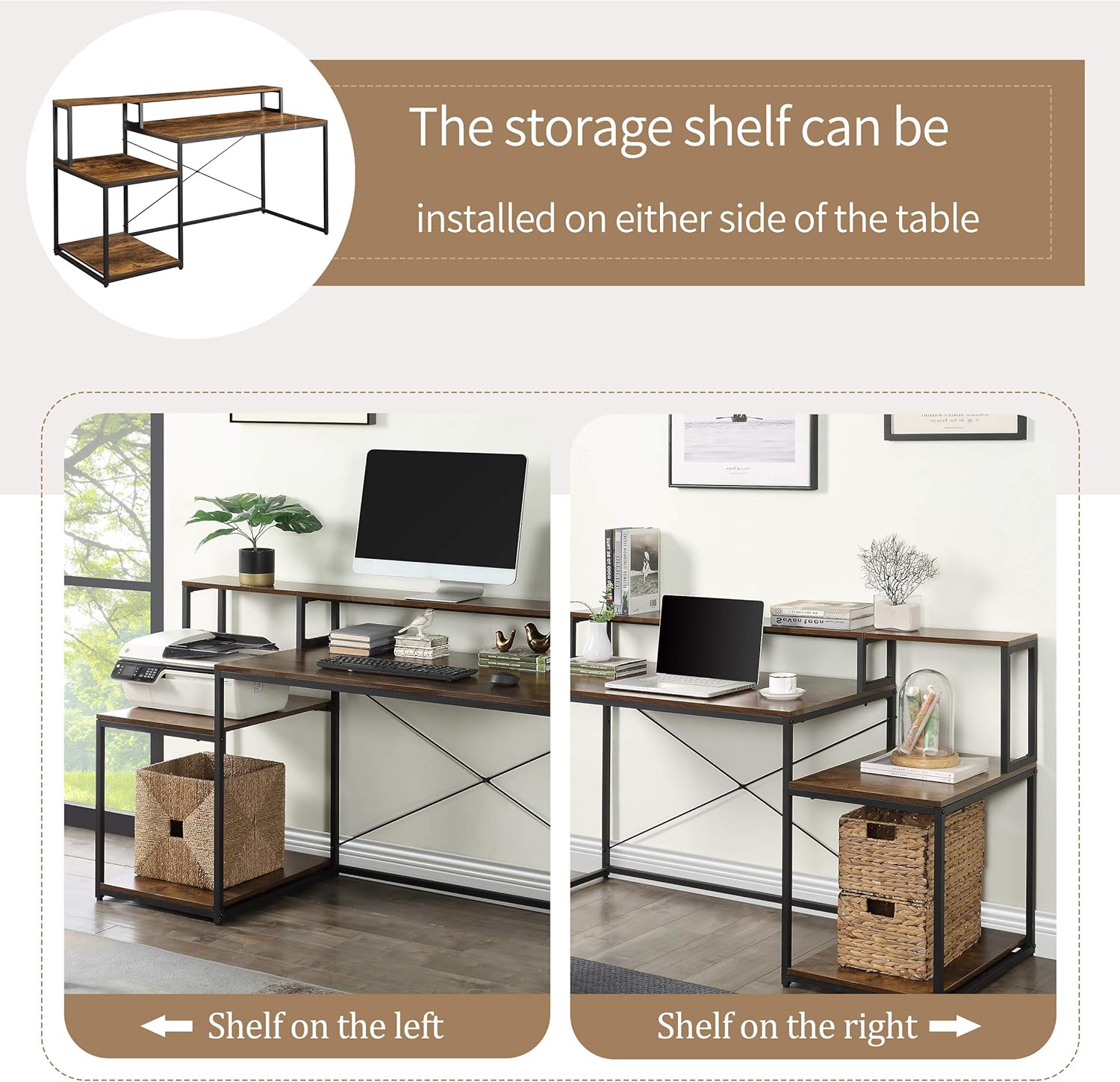 Home Office Computer Desk with Storage Shelves and Monitor Stand Riser Shelf Study Writing Desk Computer Table (Old SKU: WF198006AAT)