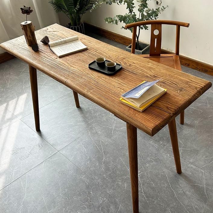 Office Desk Old Elm Large Desk Solid Wood Dining Table Retro Chinese Style Living Room Long Table Desk Simple Home Log Old Board Computer Desks(120 * 60 * 75cm)