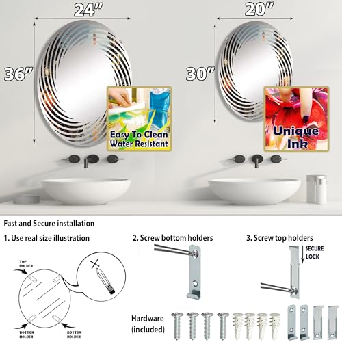 Oval Beveled Wall Mirror for Home Decor - Boulevard Style - Bright Silver - 32x38 Outside Dimensions