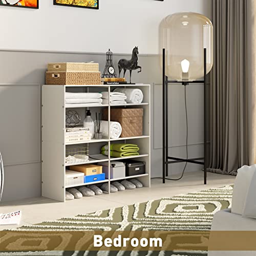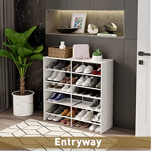 6-Tier Shoe Rack Wooden with Non-woven Fabric, Stackable Shoe Rack Organizer for Closet Entryway Wood Shoe Rack Expandable Kids Small Cubby Shoe Stand for Bedroom Storage Shelf Cabinet (White)