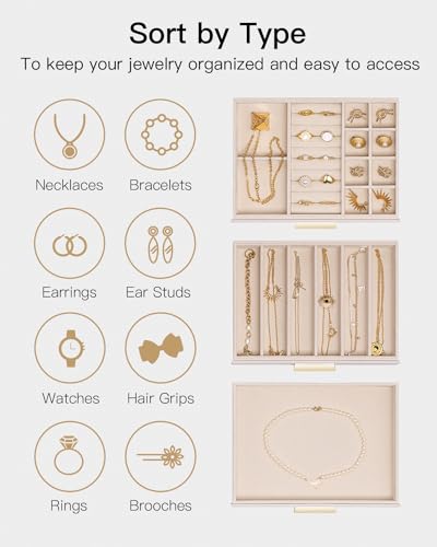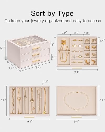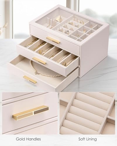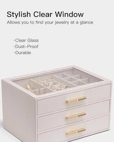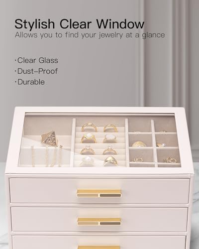 Vlando 4 Layer Jewelry Box for Women, Glass Lid Jewelry Organizer with 4 Drawers for Necklaces Rings Earrings Bracelets - Black