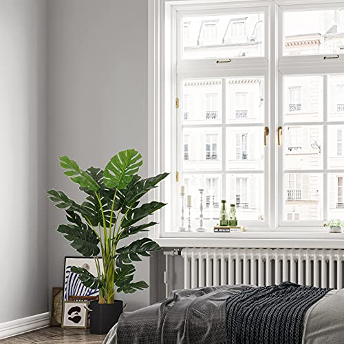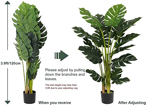 VIAGDO Artificial Monstera Deliciosa Plant 4ft Tall 15 Decorative Split Leaves Faux Swiss Cheese Fake Tropical Palm Tree for Home Office Room Store Garden Floor Decor,2pack