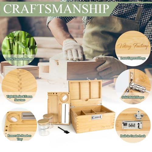 Large Bamboo Box Tray Set with Combination Lock, Lockable Home Decorative Box, Upgrade Tray | Glass Jars | Accessory Tool(Brown)