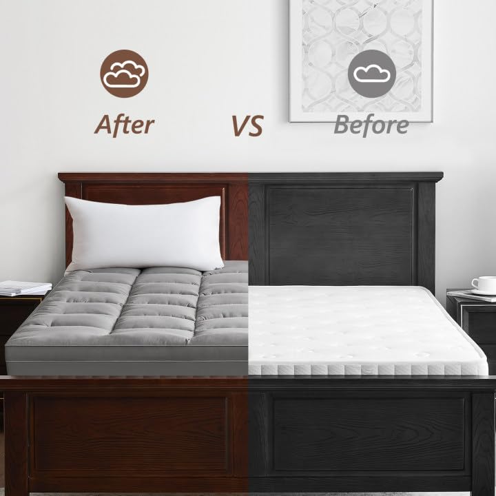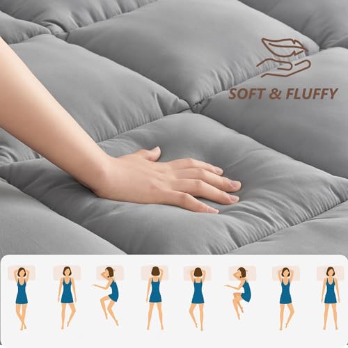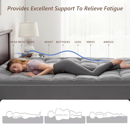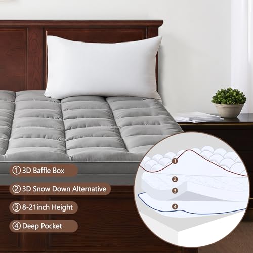 Mattress Topper Queen - Pillow Top Mattress Topper Pad Extra Thick Cover with Deep Pocket - Mattress Topper for back pain - 3D Snow Down Alternative Plush Mattress Topper (Queen,White)