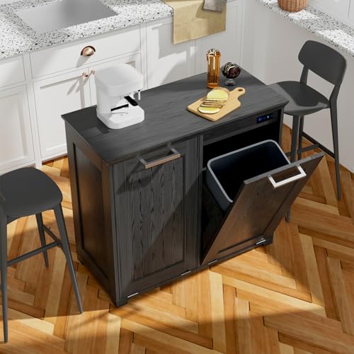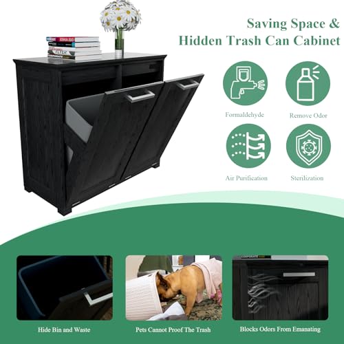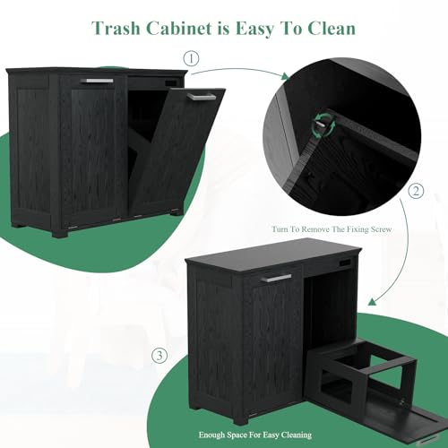 Wooden Tilt Out Trash Cabinet, Hidden Trash Can Cabinet 10-Gallon Garbage Cabinet for Kitchen, Living Room & Bathroom White Finish