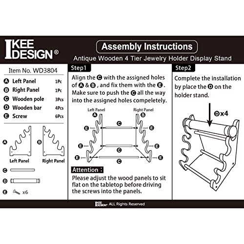 Ikee Design 2 Pcs Antique Wooden 4 Tier Jewelry Bracelet Display Stand Bangle Scrunchie Organizer Holder for Store, Showcase and Home Storage, 12 W x 9 D x 14 H in, Brown Color