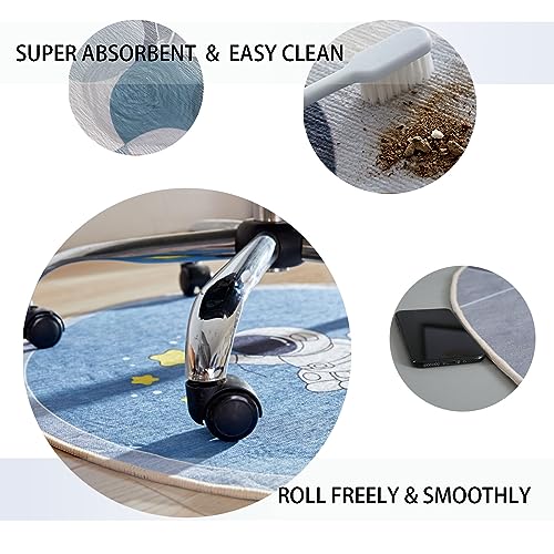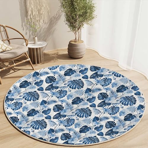 Round Rug 39 in Hawaii Office Chair Mat Cobalt Blue Baby Blue Desk Chair Mat Hard Floor Protector Anti-Slip,Low Pile Desk Rug for Rolling Chair