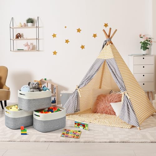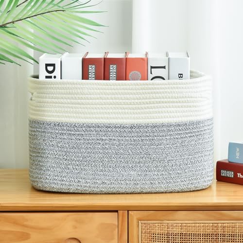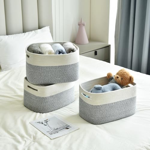 Storage Basket,Woven Baskets for Storage,Cotton Rope Baskets for Organizing,decorative Baskets for Shelves,book Basket,towel Basket,Toy Basket or Storage Bins - 3 Pack,Black and Brown