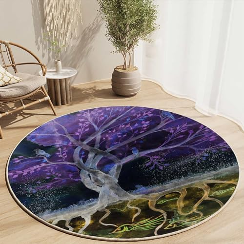 Round Rug 44 in Tree of Life Chair Mat for Carpet Multicolor Under Desk Low-Pile Rug Thick and Sturdy Desk Chair mat for Carpets