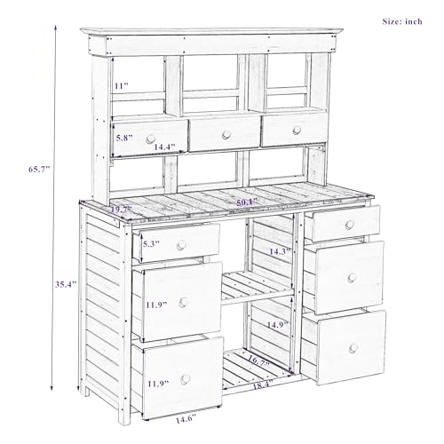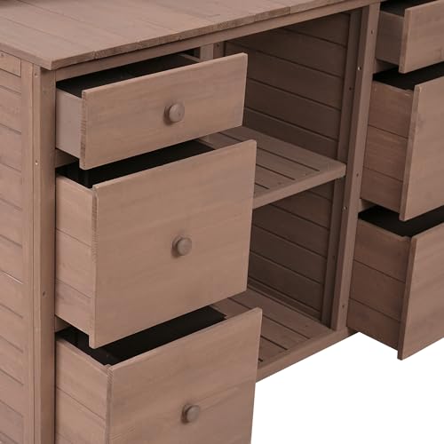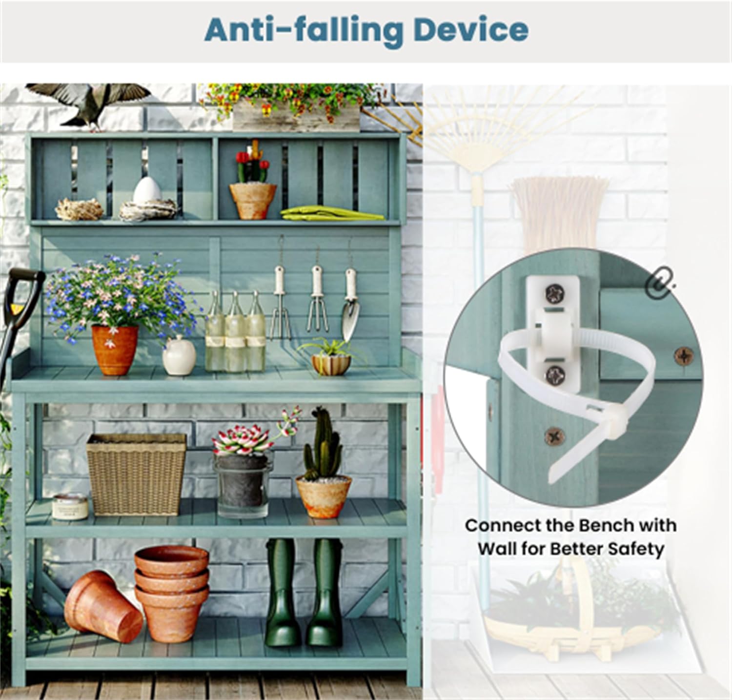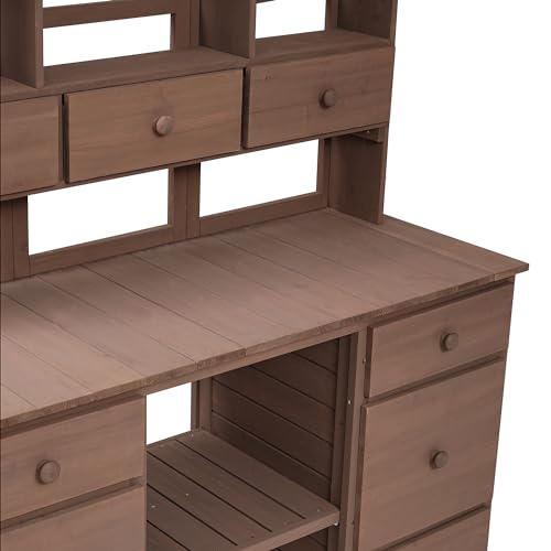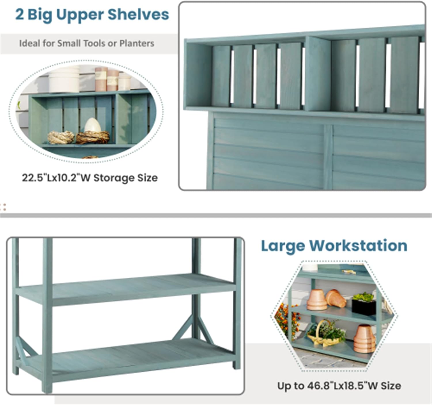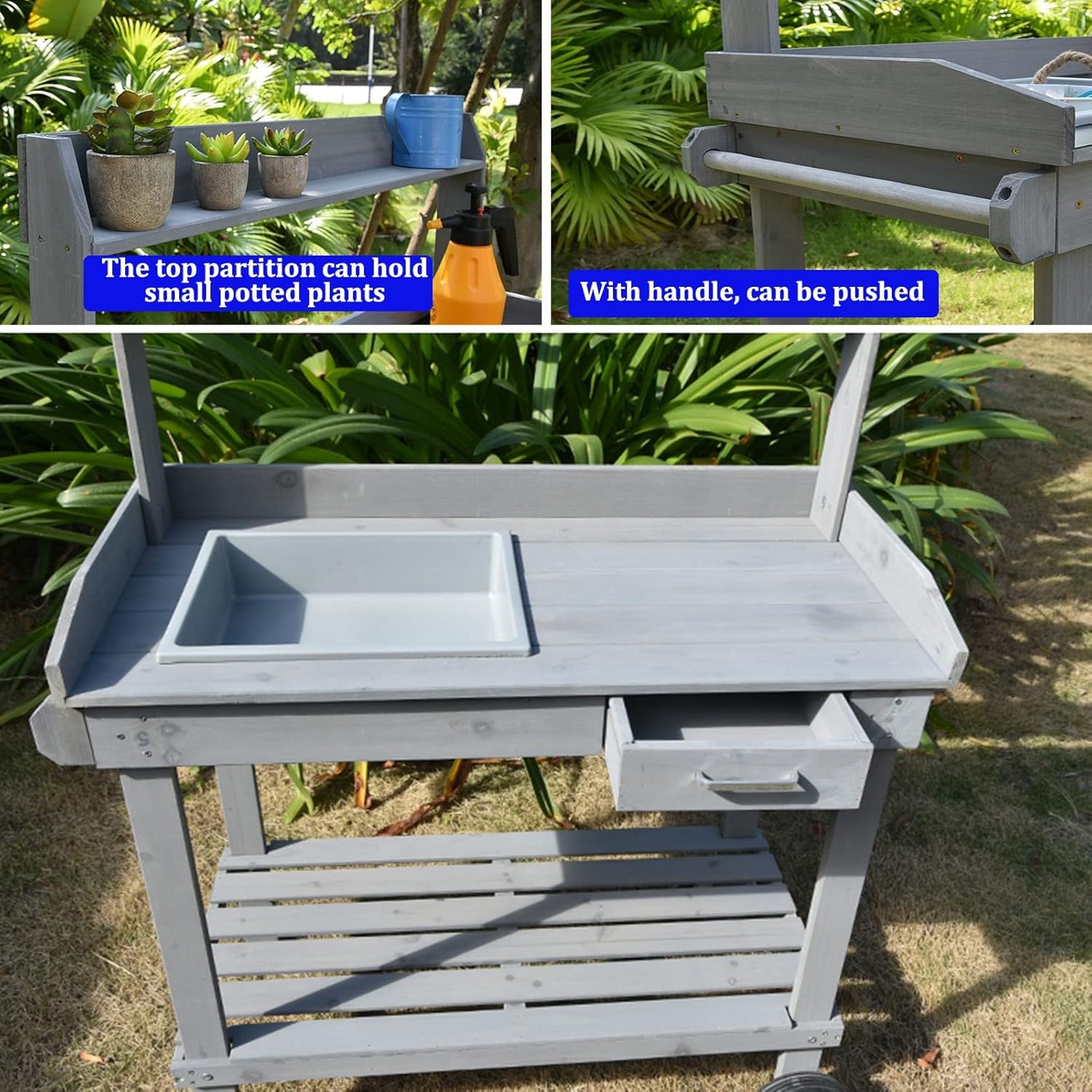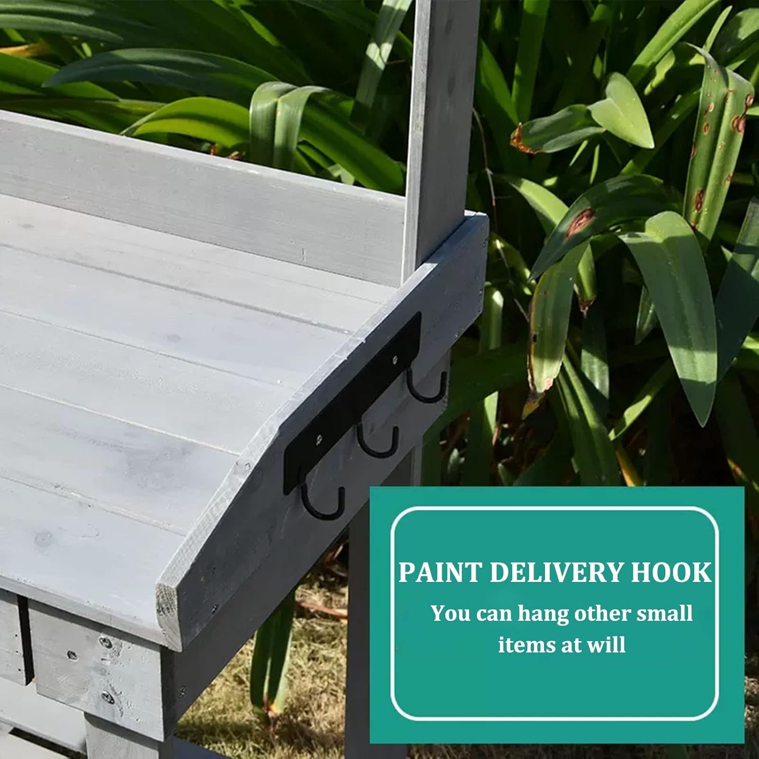 Garden Potting Bench Table, Gardening Workbench with Multiple Drawers and Shelves for Storage, Safety Anti-Falling Device, Outdoor Potting Table Wooden Patio Furniture White+Gray As Shown