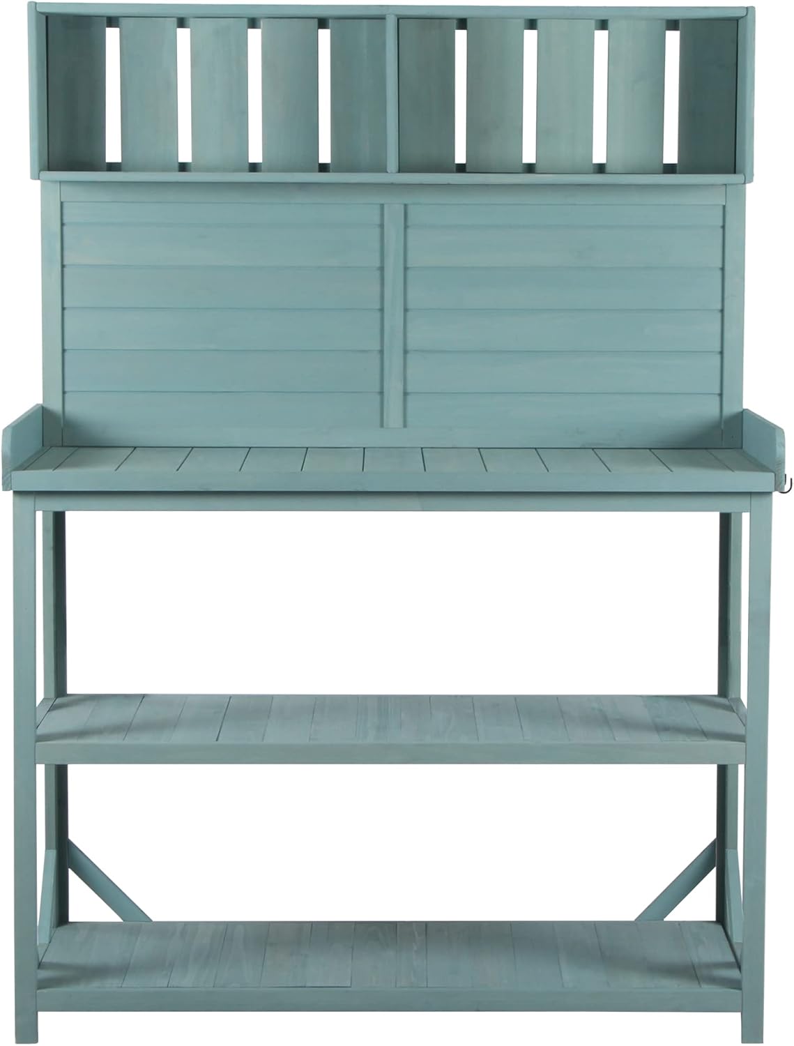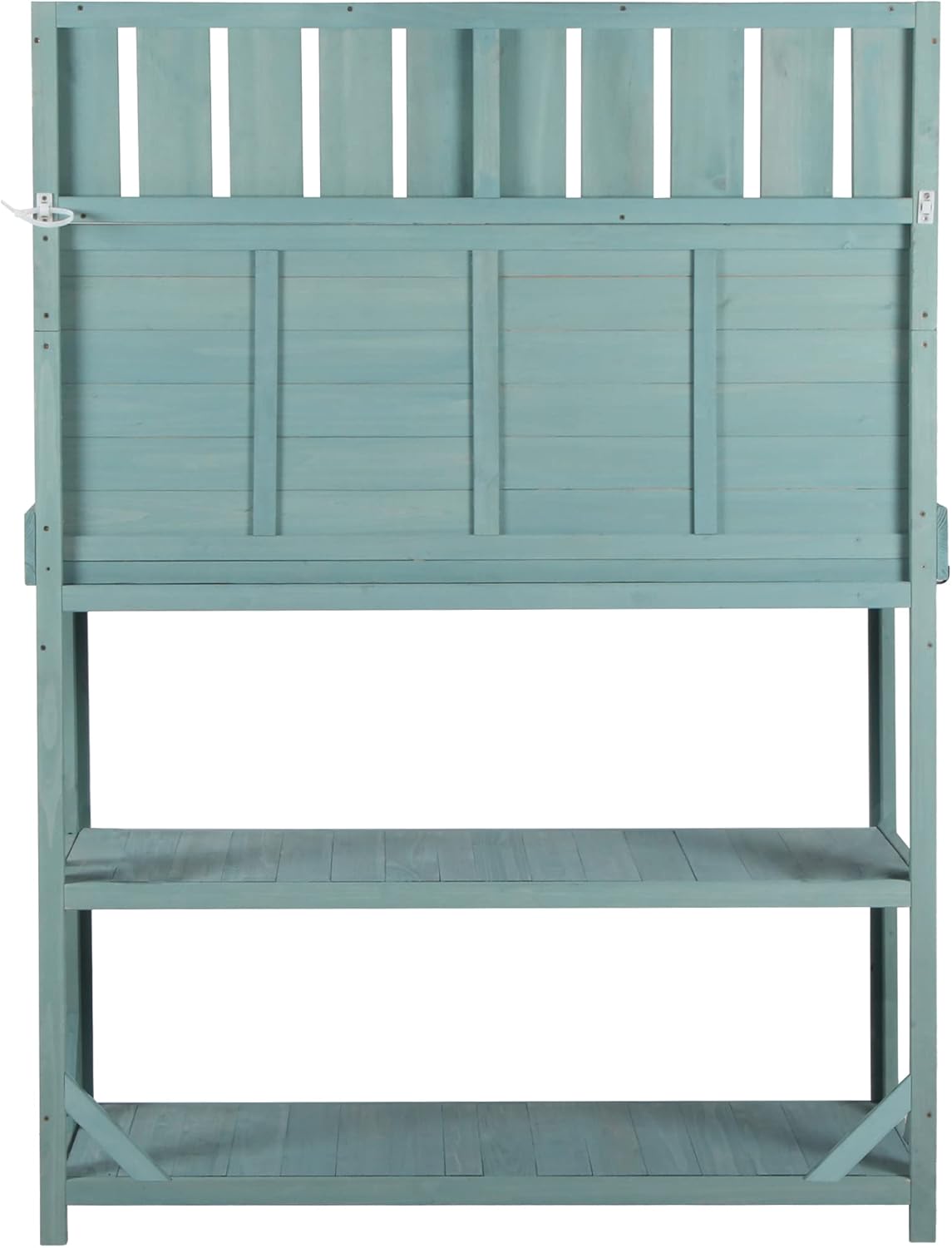 65"" Large Wooden Farmhouse Rustic Outdoor Potting Bench Table, Patio Workstation, Garden Potting Bench with 4 Storage Shelves and Side Hook,Green, WF285323AAF