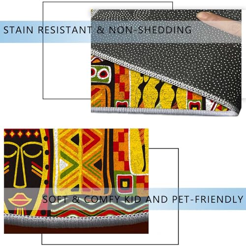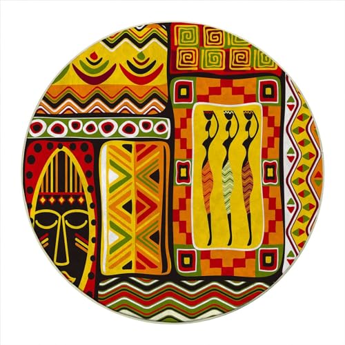 Round Rug 39 in African Office Desk Chair Mat Multicolor Office Rugs for Rolling Chairs Office Home Floor Protector mat Chairmats