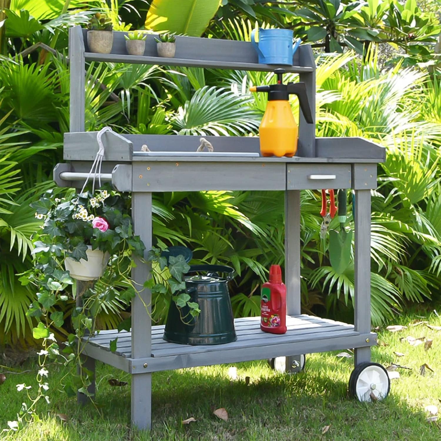 Potting Bench Tables Outdoor, Garden Patio Workstation, with Spacious Storage Shelf/Solid Wooden Construction, for Backyard Patio Balcony (Gray 80x50x80cm)