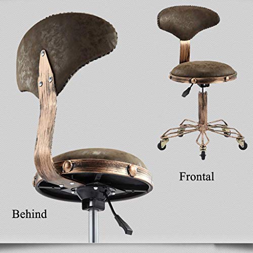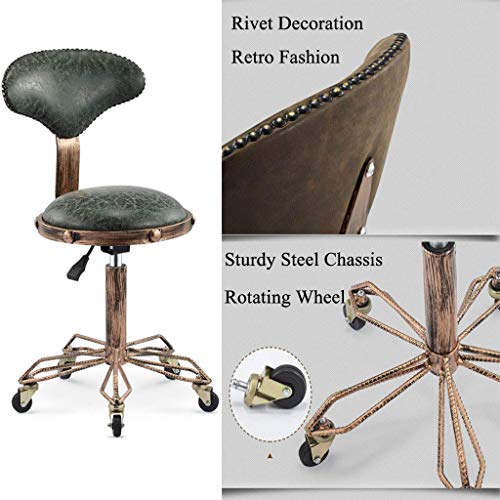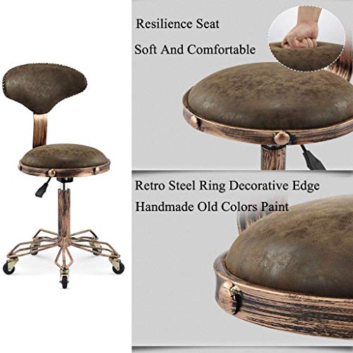 Lifting High Stool, Adjustable Height Rolling Swivel Salon Stool, Retro Industrial Style Tattoo Massage Spa Stool Chair with Backrest - Ergonomic Design (PU Leather Cushion)
