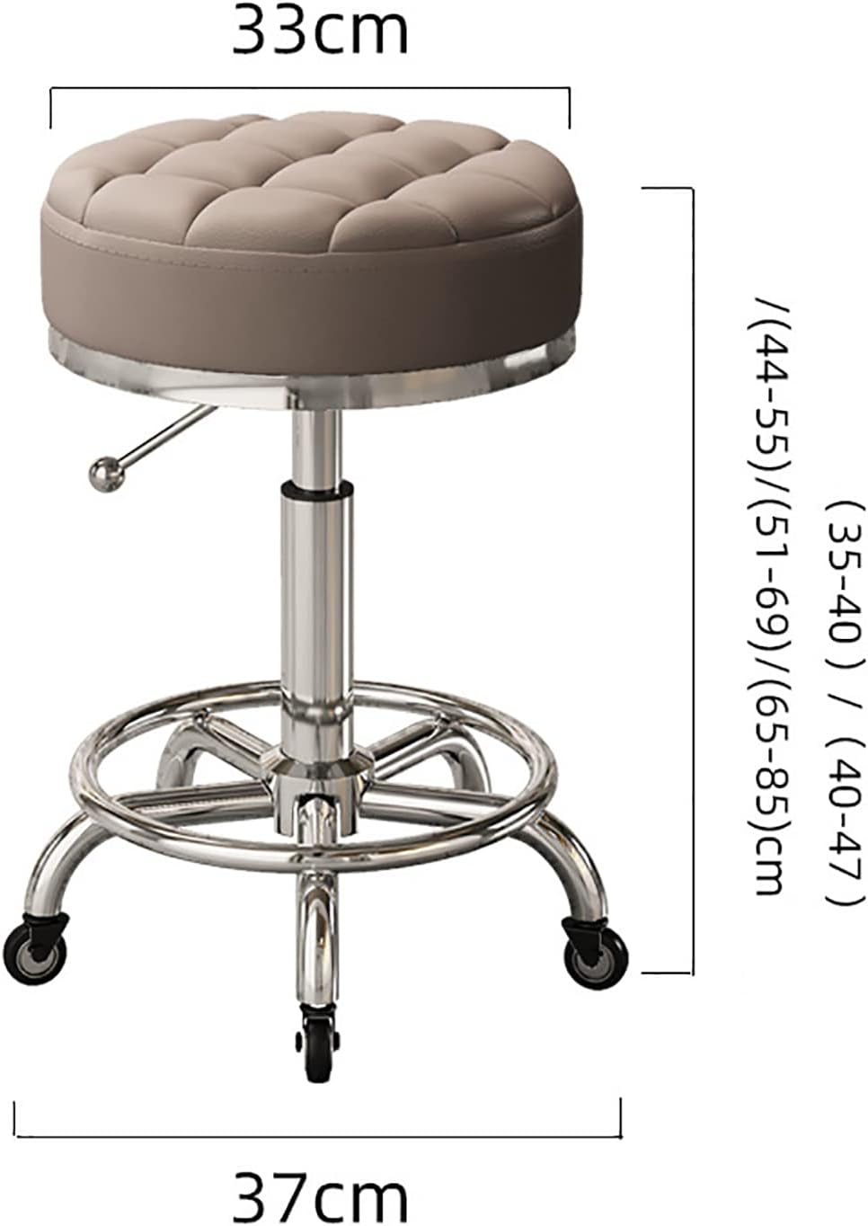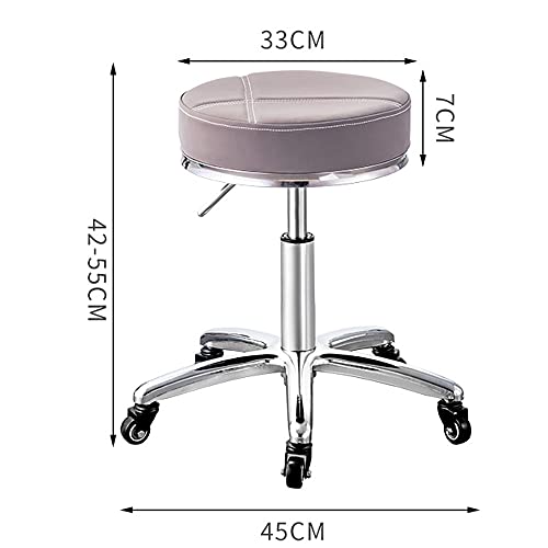 Rotating Stool Swivel Rolling Stool with Wheels and Foot Rest,Leather Height Adjustable,Bar Esthetician Salon SPA Vanity Stool red (Grey One Size)