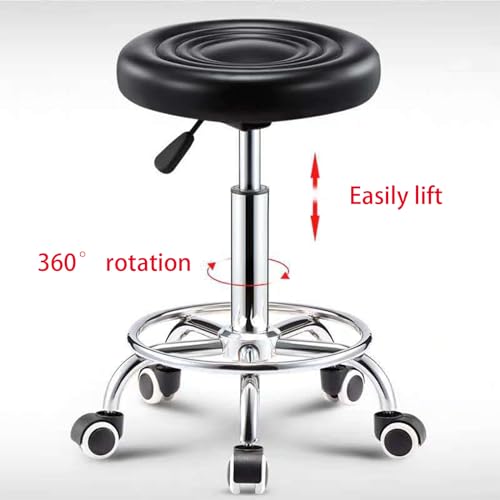 Rotating Stool Swivel Round Rolling Stool with Wheels and Foot Rest, Height Adjustable Salon Tattoo Work Office Massage Stools Chair