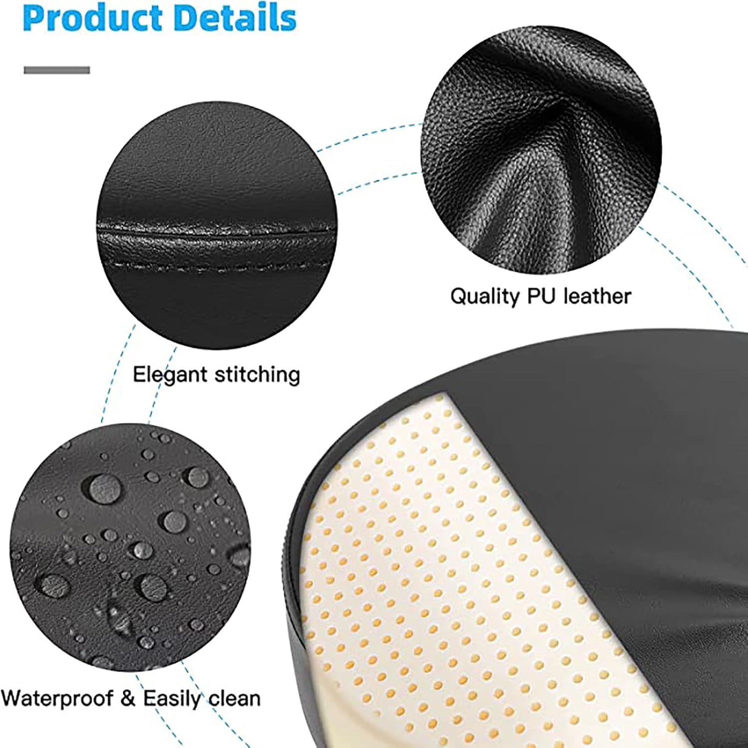 Round Rolling Stool with Wheels and Thicker Waterproof Seat, Adjustable Height PU Leather Stool Shop Stool with Footrest Swivel Massage SPA Stool Hairdressing Salon blue1(Black)