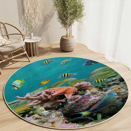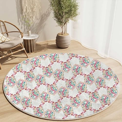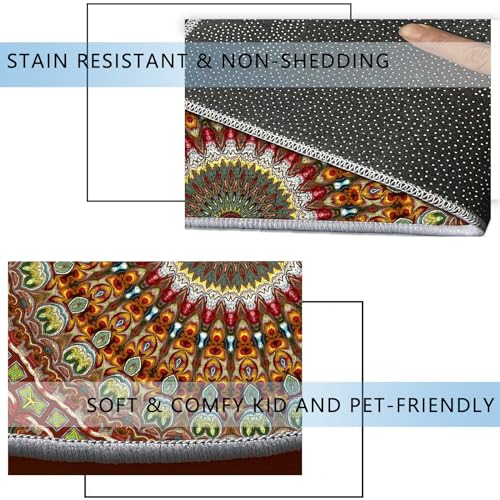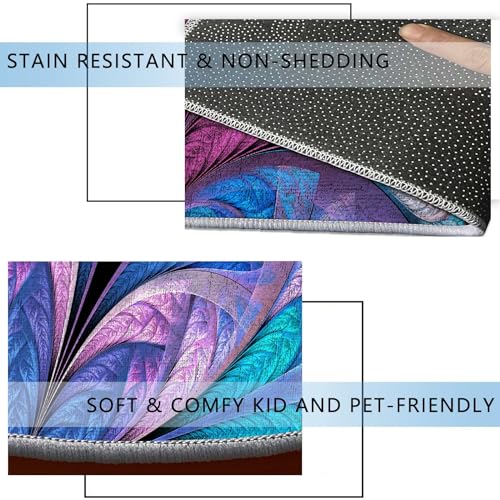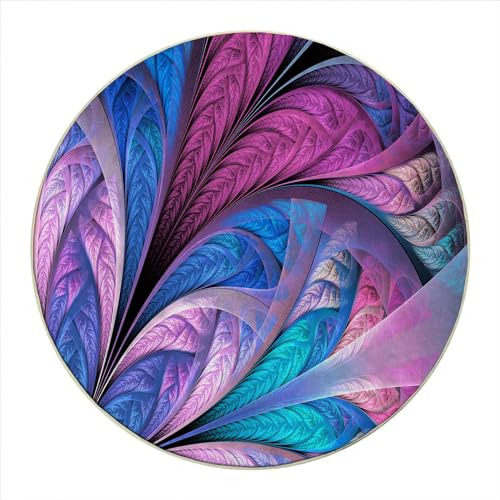 Round Rug 39 in Peacock Chair Mats for Low Pile Colorful Hard Floor Mat for Desk Anti-Slip,Low Pile Desk Rug for Rolling Chair
