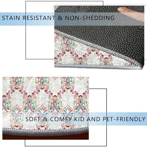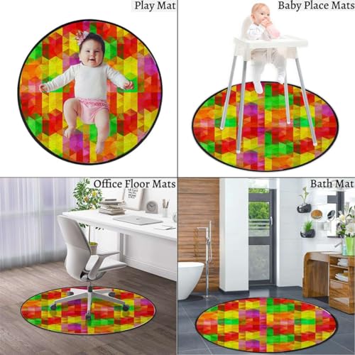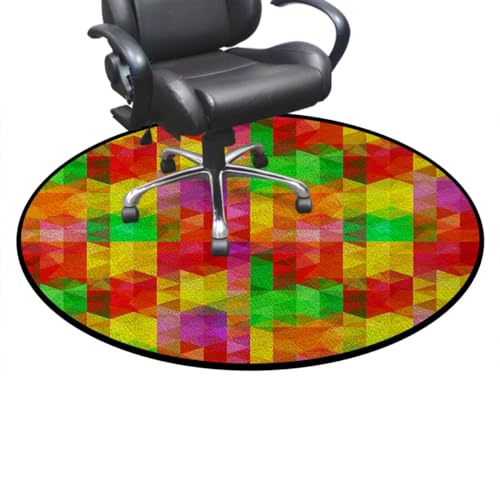 Round Rug 5 FT Stained Glass Rolling Chair Mat Green Blue Under Desk Low-Pile Rug Anti-Slip Desk Mat Floor Mat for Office Chair