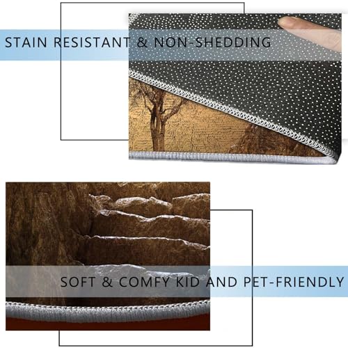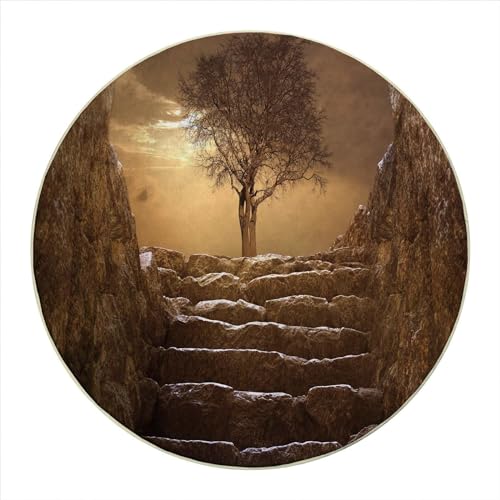 Round Rug 5 FT Tree Forest Chair Mat for Carpet Green Yellow Office Floor Protector Office Chair Mat for Hardwood/Tile Floor