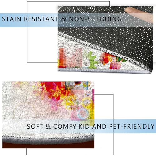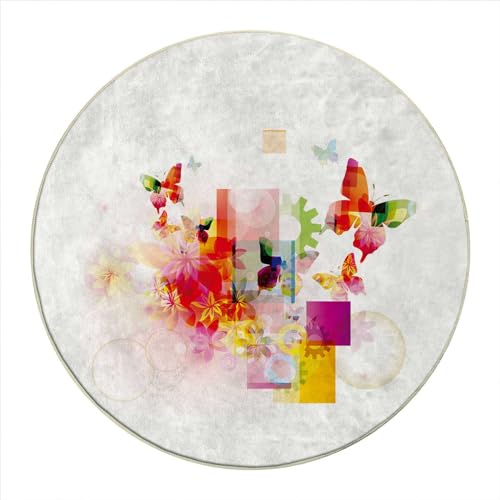 Multicolor Round Chair Mat Floor Protector Non-Slip Floor Low Pile Desk Chair Mat Rolling Chair and Computer Desk Carpet Mat Floral Colorful Wings Artwork Diameter 51 in