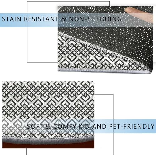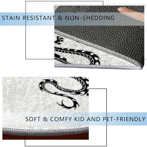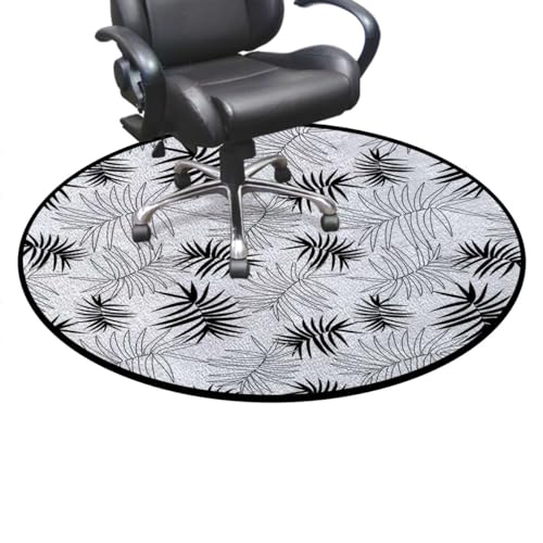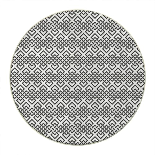 Black White Round Chair Mat Floor Protector Non-Slip Floor Low Pile Desk Chair Mat Rolling Chair and Computer Desk Carpet Mat Traditional Geometric Ancient Designs Diameter 51 in