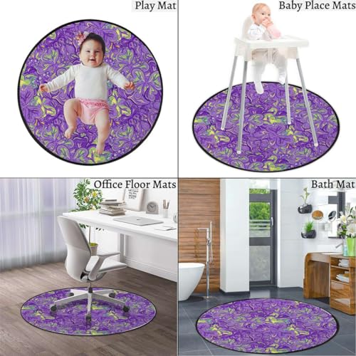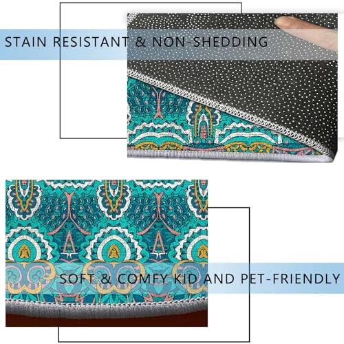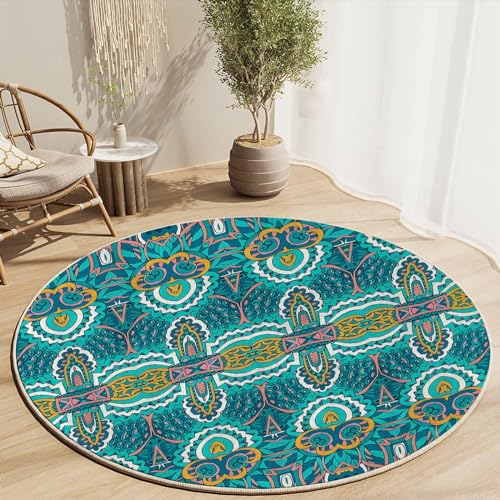Round Rug 44 in Bohemian Chair Mats for Low Pile Grunge Floor Protector Mats Thick and Sturdy Desk Chair mat for Carpets