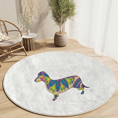 Round Rug 44 in Dachshund Chair Mat for Carpet Multicolor Desk Chair Mat for Rolling Chair Non-Slip Computer Desk Mat for Tile Floor, Rolling Chairs
